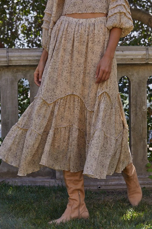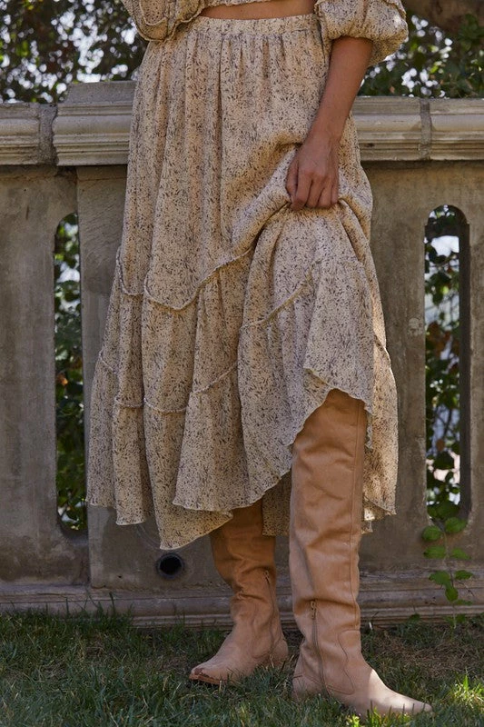 Jet-set somewhere warmer in this desirable set! Our Ambiance Cotton Pocketed Floral Midi Skirt is red with white and blue florals. Designed with side pockets and an elastic waistband.