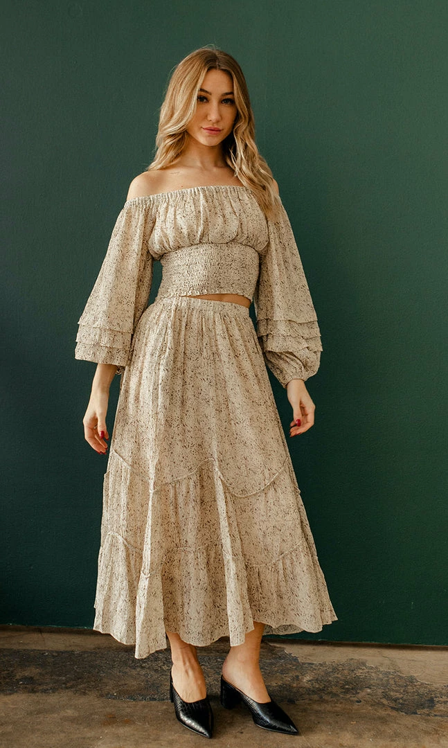 Model is Wearing a Size Small. Height is 5’7”, Bust is 32”, Waist 24” and Hips 35”