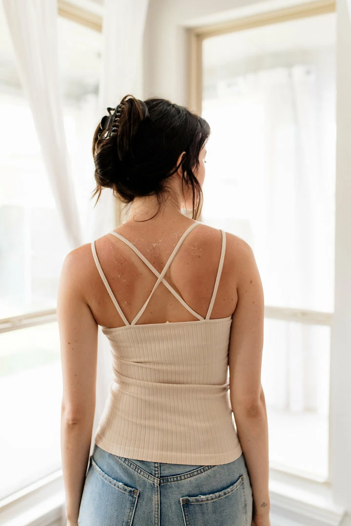 This classic ribbed tank is soft with our high quality bamboo! Our Birkin Bamboo Ribbed Strappy Camisole has detailing on the back. We love how this ribbed knit piece tucks into your favorite pair of denim.