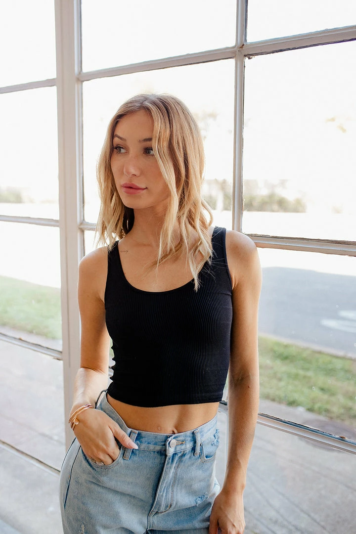 Keep it casual in our Brock Seamless Knit Crop Tank Top! This knit crop tank is so flattering! Wear this cool girl top with denim shorts and sneaks for a casual weekend vibe.