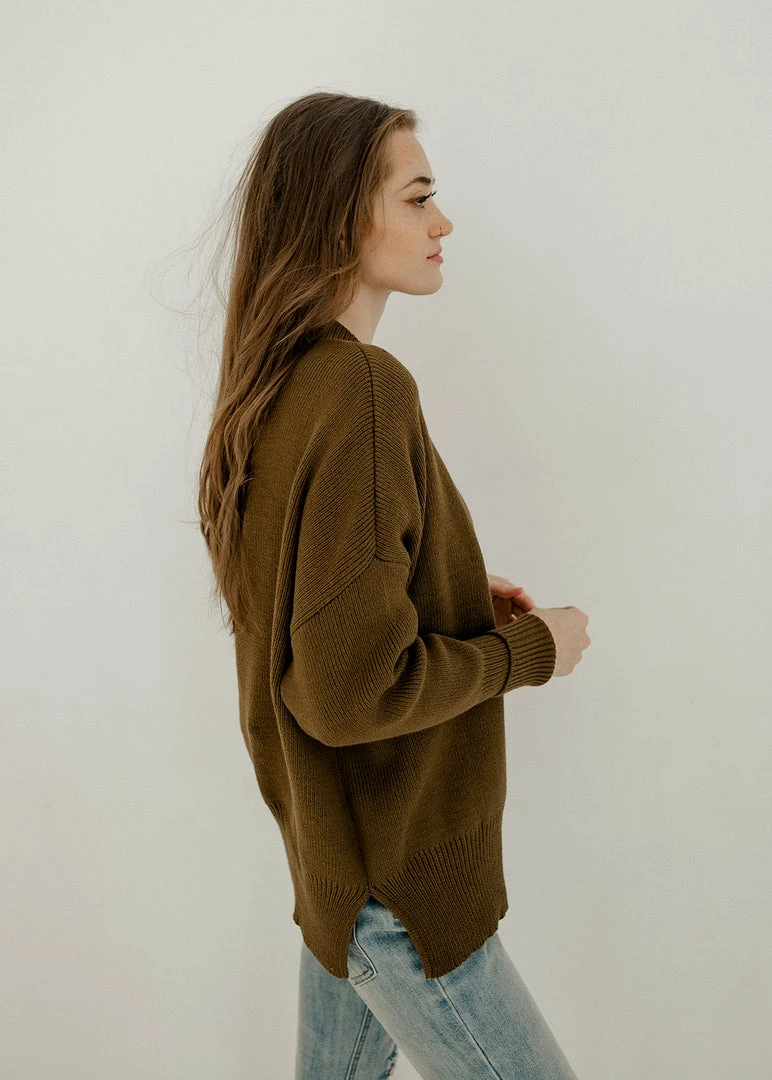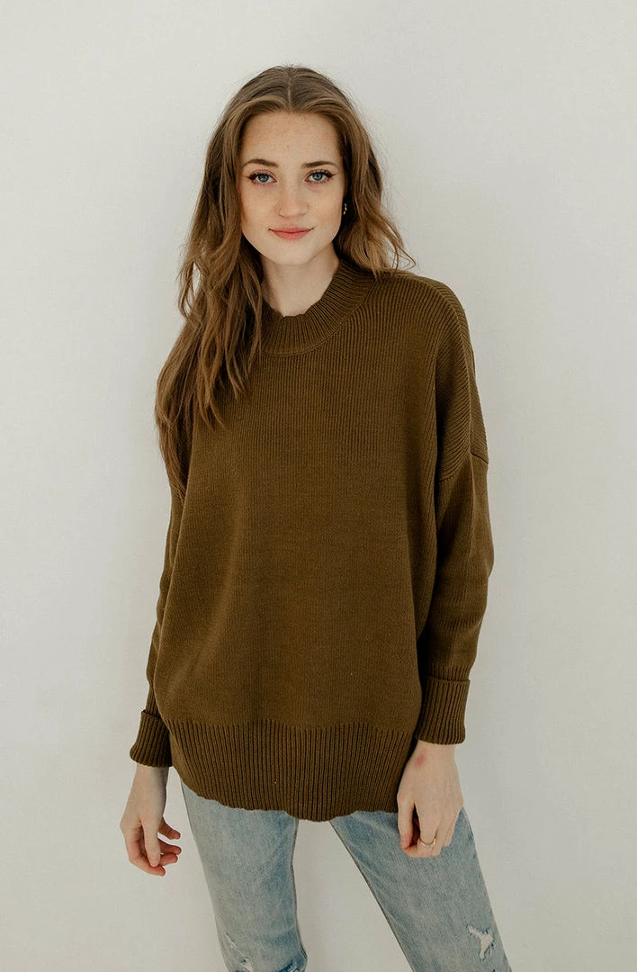 We can’t deny a soft and stretchy knit! Our Owen Ribbed Chunky Sweater is chilly weather ready with its boxy fit and ribbed fabrication. Fit with a mock neckline and dropped shoulders that add an unexpected detail. Pull on this perfect sweater when the cool Autumn breeze arrives! Styled with our matching set Owen High Rise Shorts.