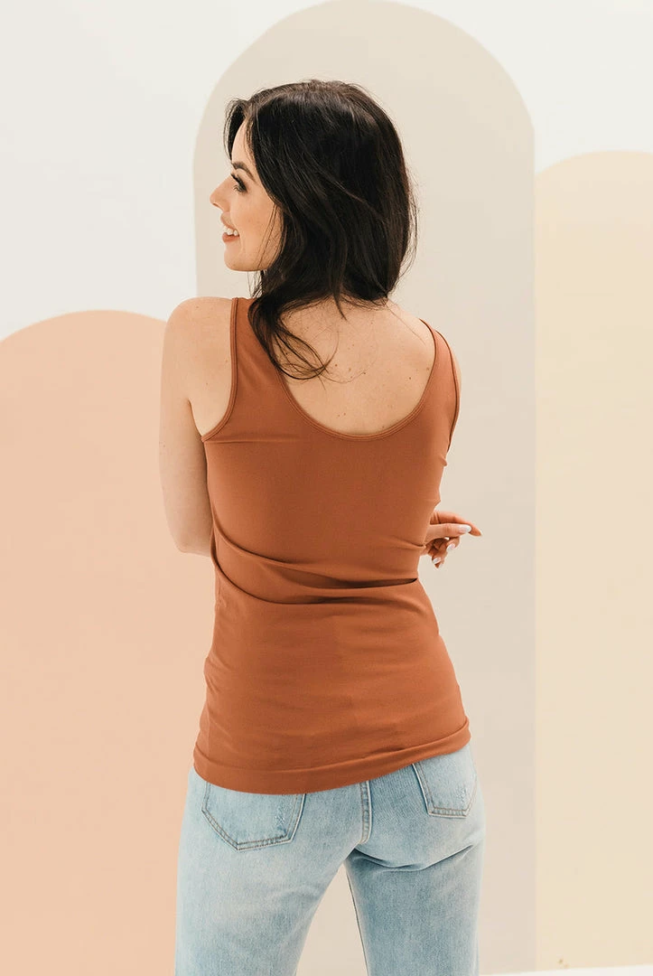 SKU: bt-5443635380374 Categories: BUMP FRIENDLY, FEATURED SHOPS, SEAMLESS BASICS, SEAMLESS TOPS, TANKS + CAMIS, TOPS Tags: Basic, Burnt orange, Rust, Seamless basic, Seamless top, Spandex, TANK, TOP