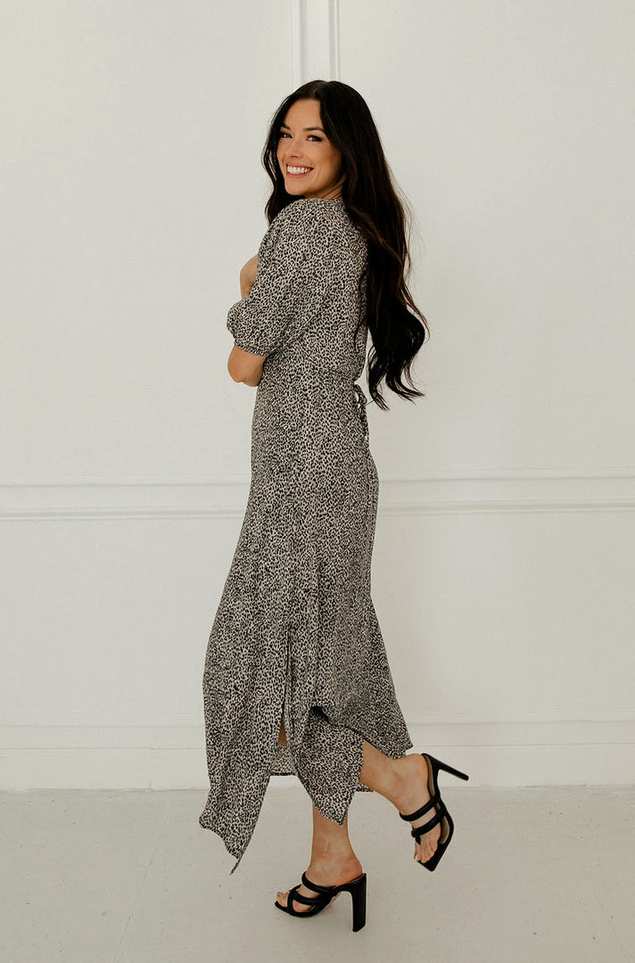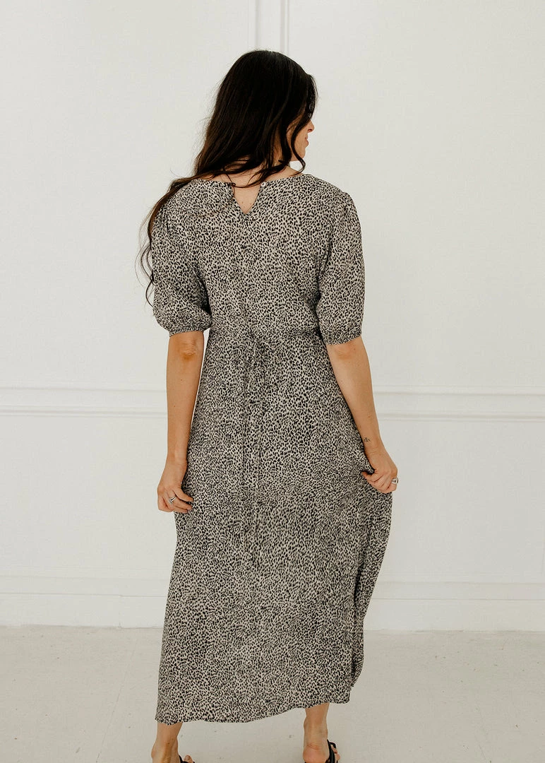 Best Selling Silhouette// This body is our fav boho style! Our Carli Slit Sides Maxi Dress comes with charcoal and ivory hues. Designed with a puffy sleeves and self waist ties.