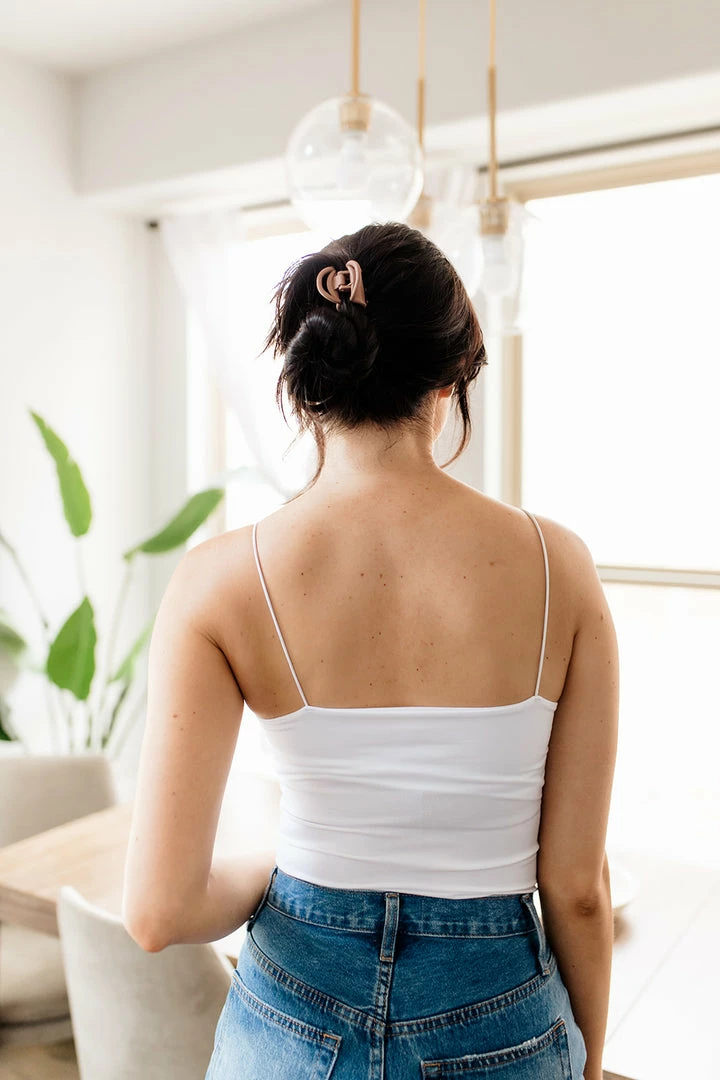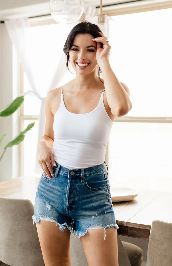 A wardrobe must, the Close Call Seamless Cami Bodysuit in fudge brown features a scooped neckline and a double lined bust with snap button bottom closure.