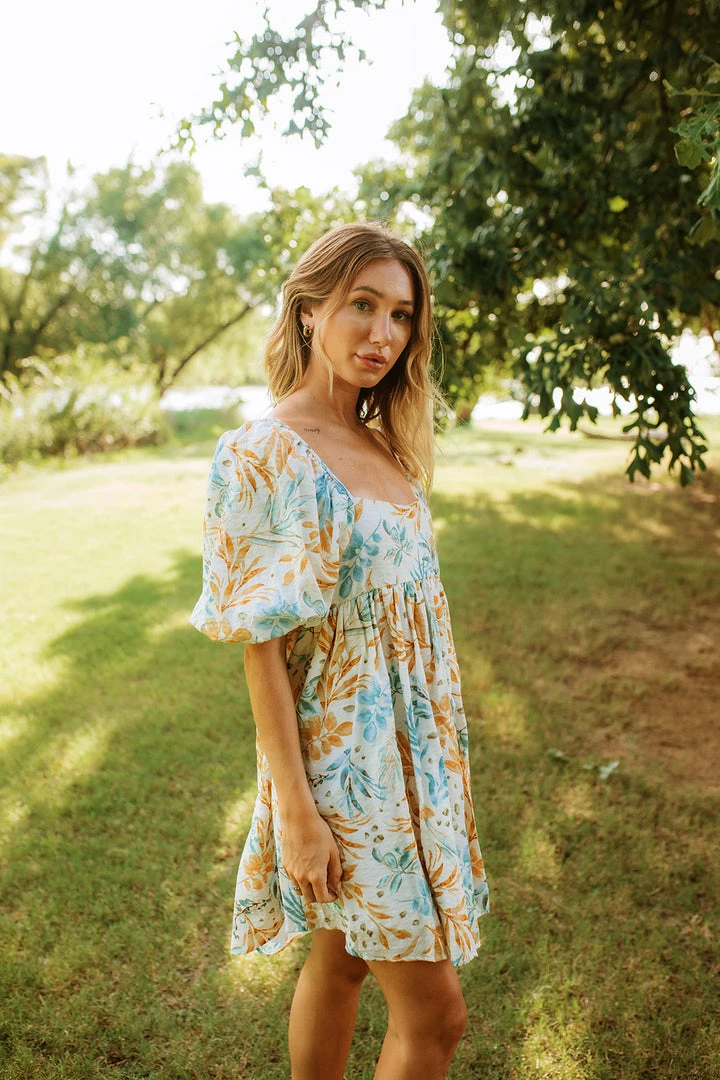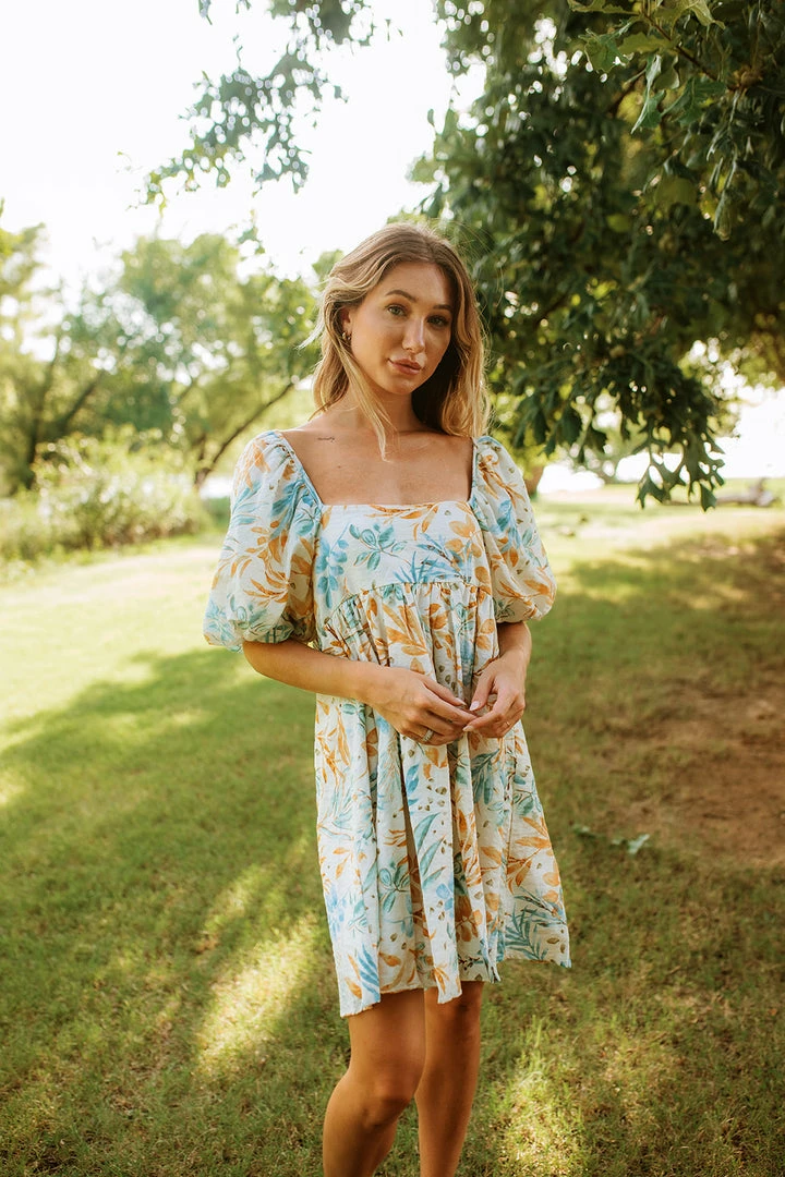 We love a dress that’s equally as cute as it is comfortable! Our Deep Summer Puff Sleeve Babydoll Dress is a cream base with florals in yellow and mint. The babydoll silhouette and square neckline make this dress so cute & fun!