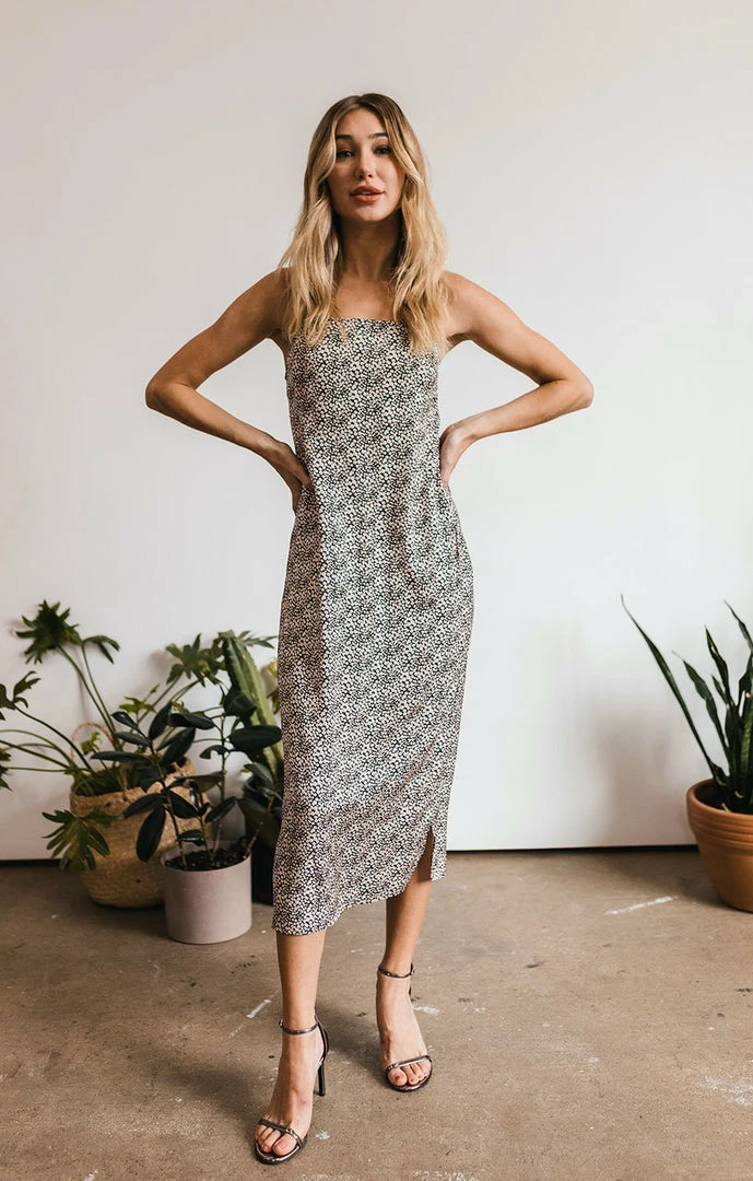 We’re losing our cool over the Dream Girl Floral Satin Slip Midi Dress! Printed with a black, white and orange floral print on a satin base. The slimming silhouette features a square neckline and adjustable straps for the perfect fit. A sultry midi that lengthens and flatters the body effortlessly in this versatile piece!