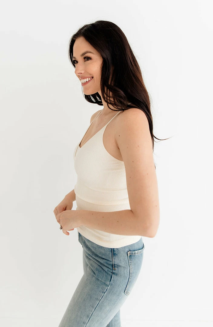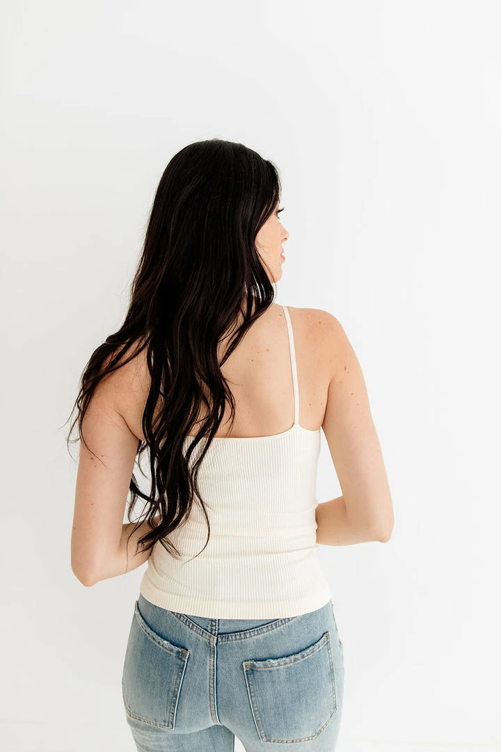 Keep calm and cool in the Front Mesh Ribbed Cami! This buttery knit cami comes in a fitted silhouette with a V-neck neckline + front mesh cleavage detailing with fixed straps. Pair this versatile top under cardigans and jackets for a classic look.