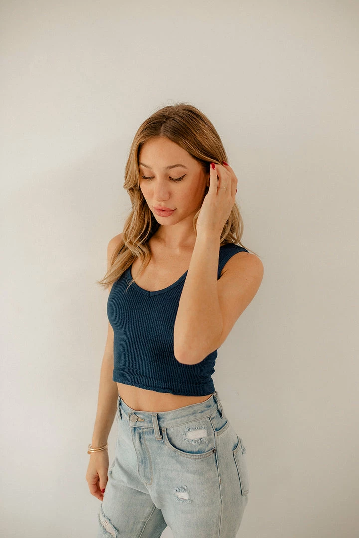 Our Izzy Ribbed Crop Tank can serve as a flirty top with denim shorts, or paired with your favorite high waisted jeans! Cut to fit snuggly, the stretchy and thick fabric is perfectly femme for the season!