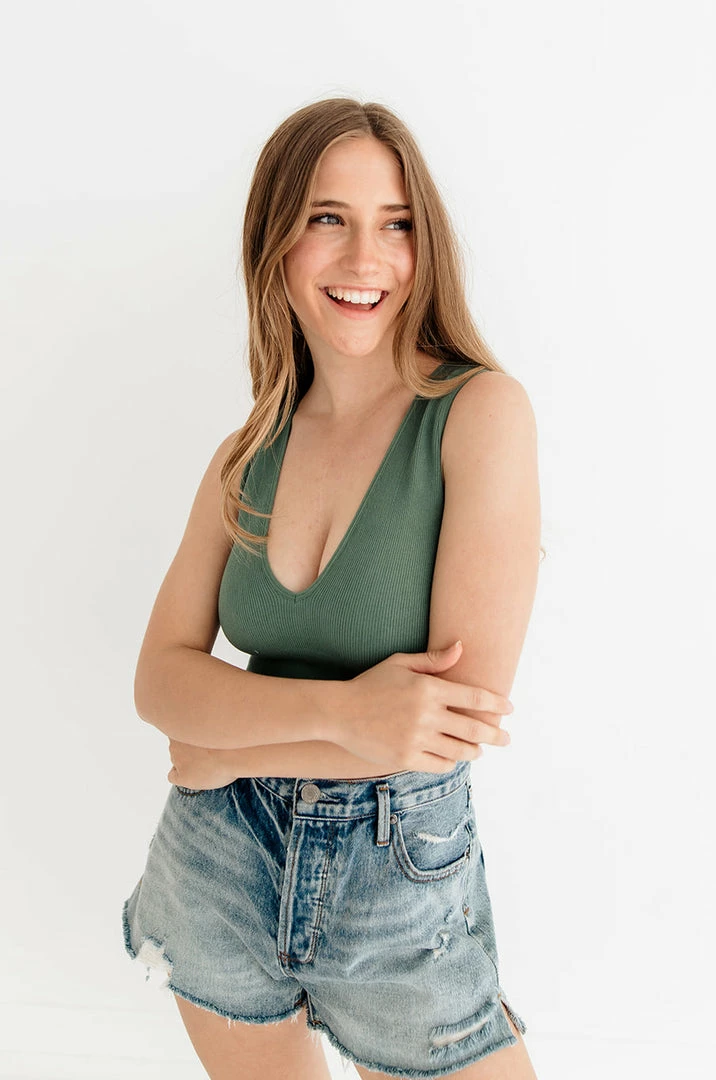 - Size M/L: Length measures 15” from shoulder to hem with a 24” bust with stretch