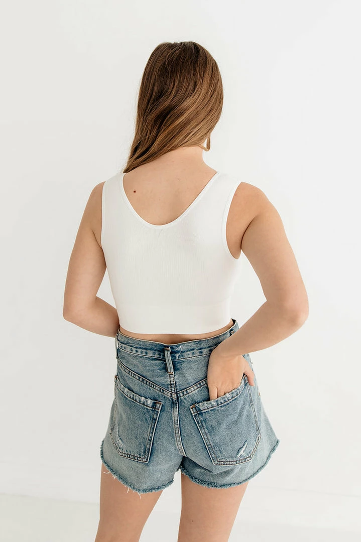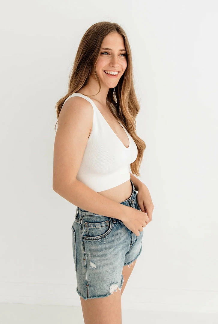 - Size M/L: Length measures 15” from shoulder to hem with a 24” bust with stretch