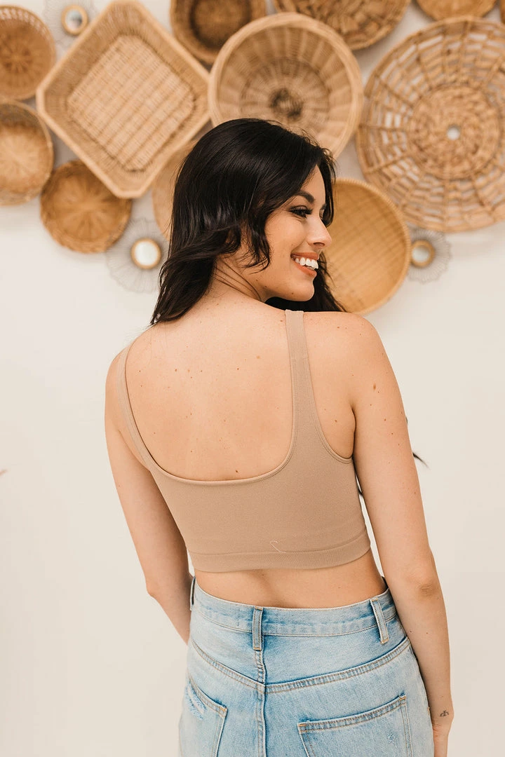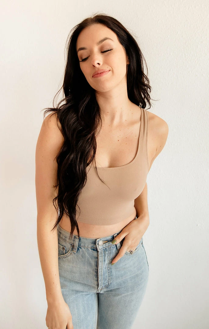 A cute cropped tank is an essential! Our Levi Seamless Tank Brami features a soft and seamless finish in a stretchy fabrication with thin fixed straps. Layer it to add coverage to sheer tops, workout or wear it as you lounge around the house!