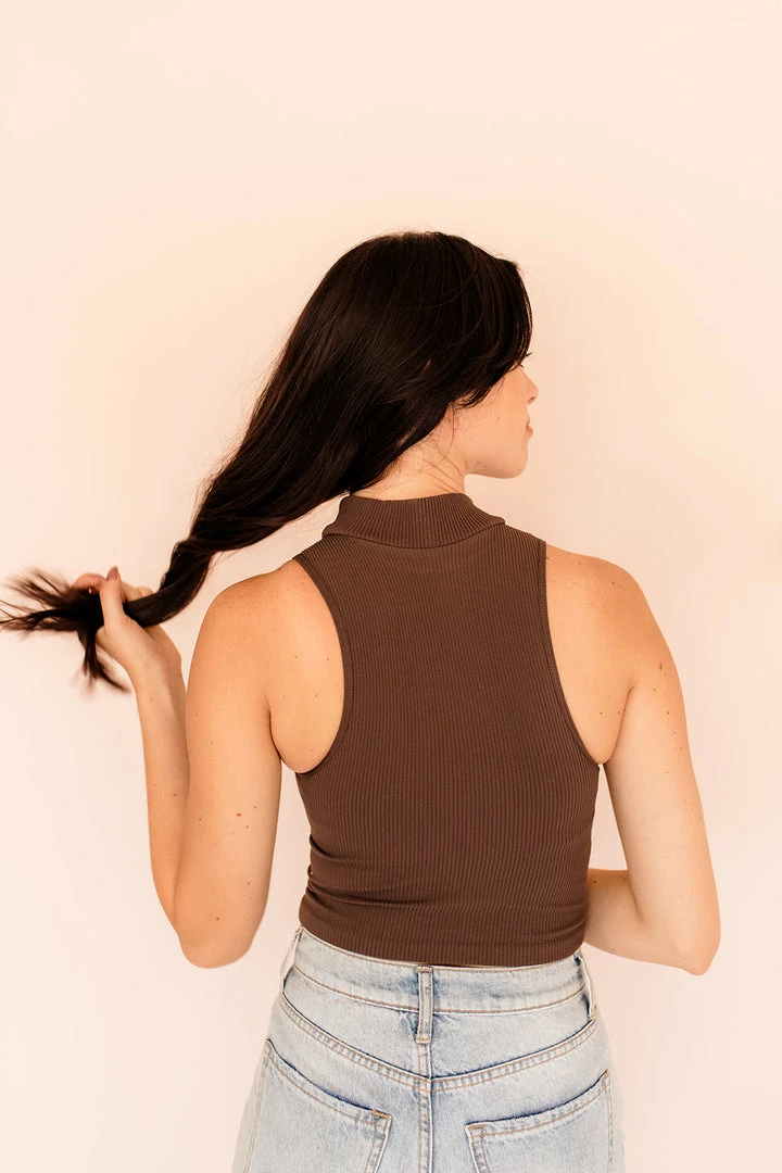 Introducing your new fav layering top! Our Molly Seamless Ribbed Mock Neck Top layers perfectly under coats and cardigans. This cropped top has a mock neckline in a stretchy knit fabric that is ribbed.