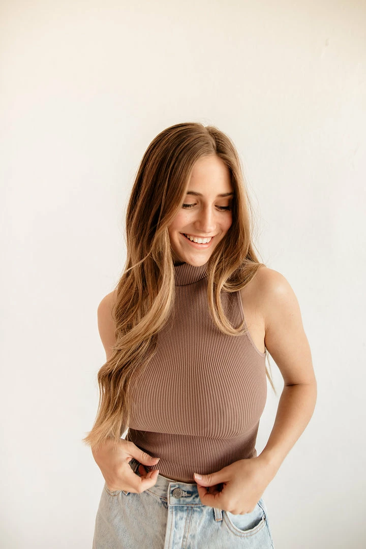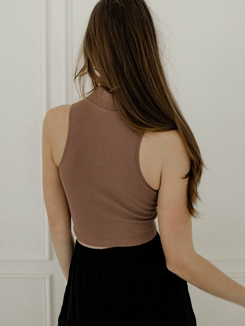 Introducing your new fav layering top! Our Molly Seamless Ribbed Mock Neck Top layers perfectly under coats and cardigans. This cropped top has a mock neckline in a stretchy knit fabric that is ribbed.