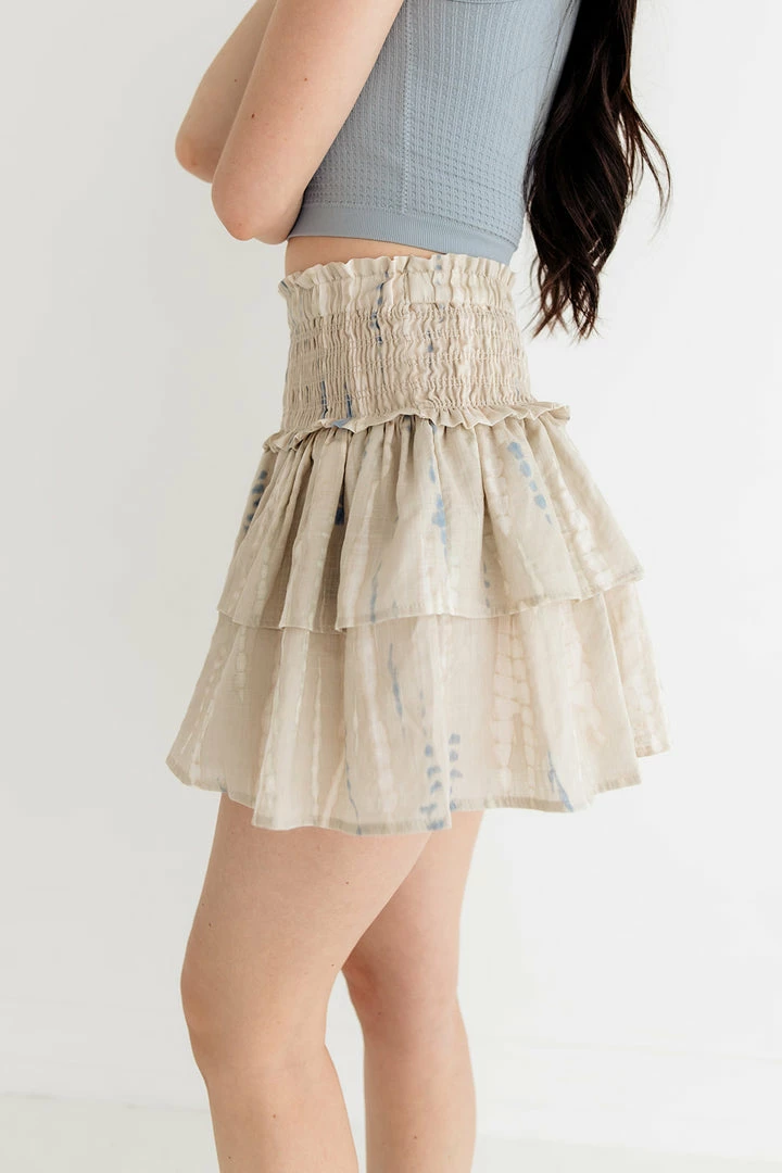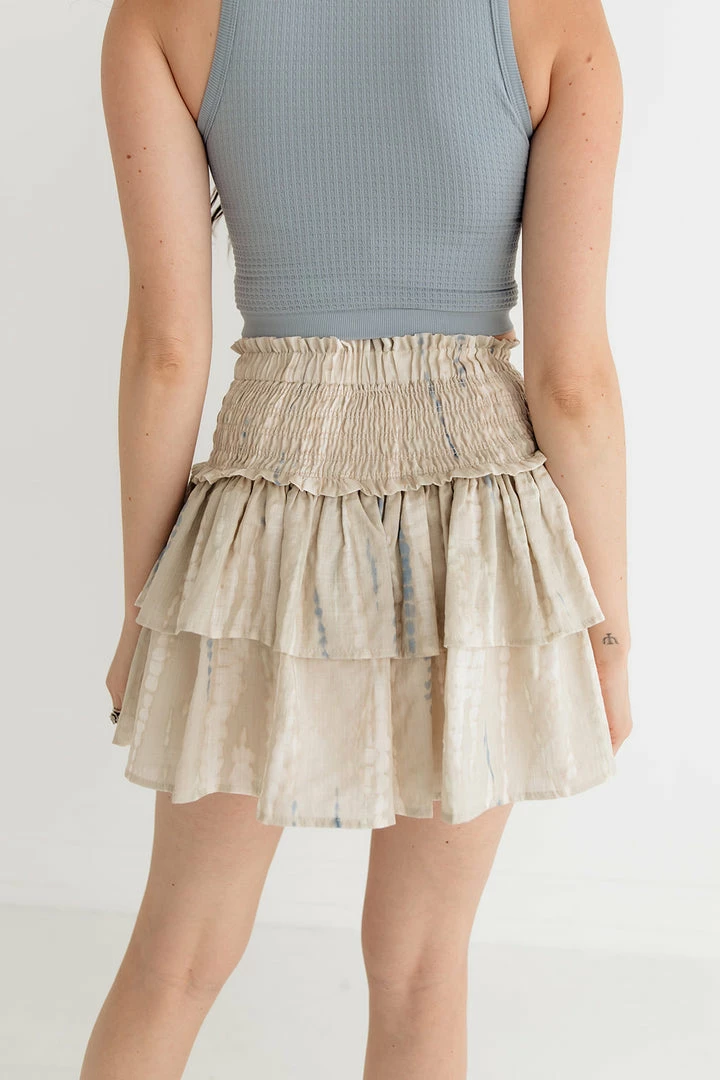 Turn heads in this floral top or skirt! You can wear this how ever you’d like! Our RNellie Tie Dye Smocked Ruffle Skirt Or Tube Top features tie dye in blue, grey, and a hint of white with a smocked waist and a ruffle tiered body.