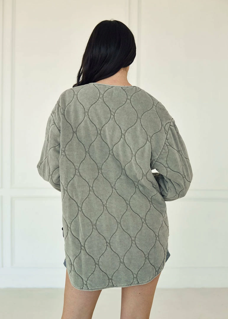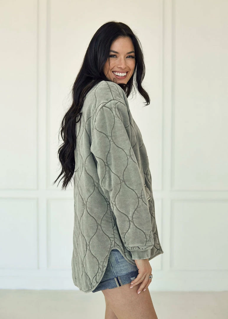 Quilted jackets are so in! Our Charli Stone Washed Quilted Jacket is a classic olive color with a front zipper closure made in a high quality construction.