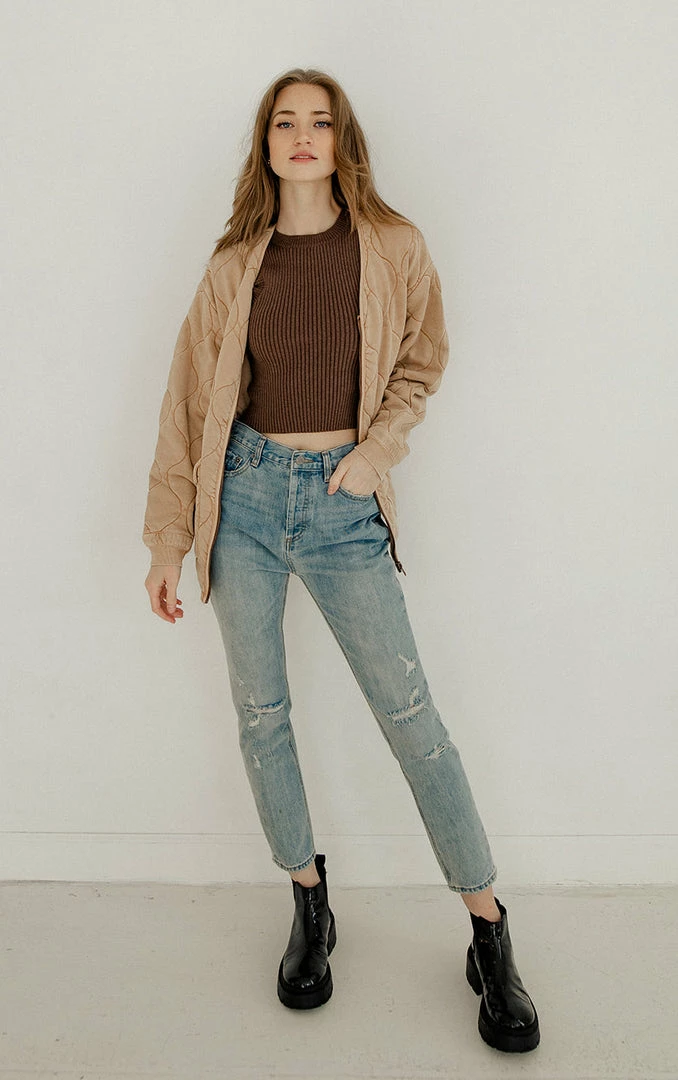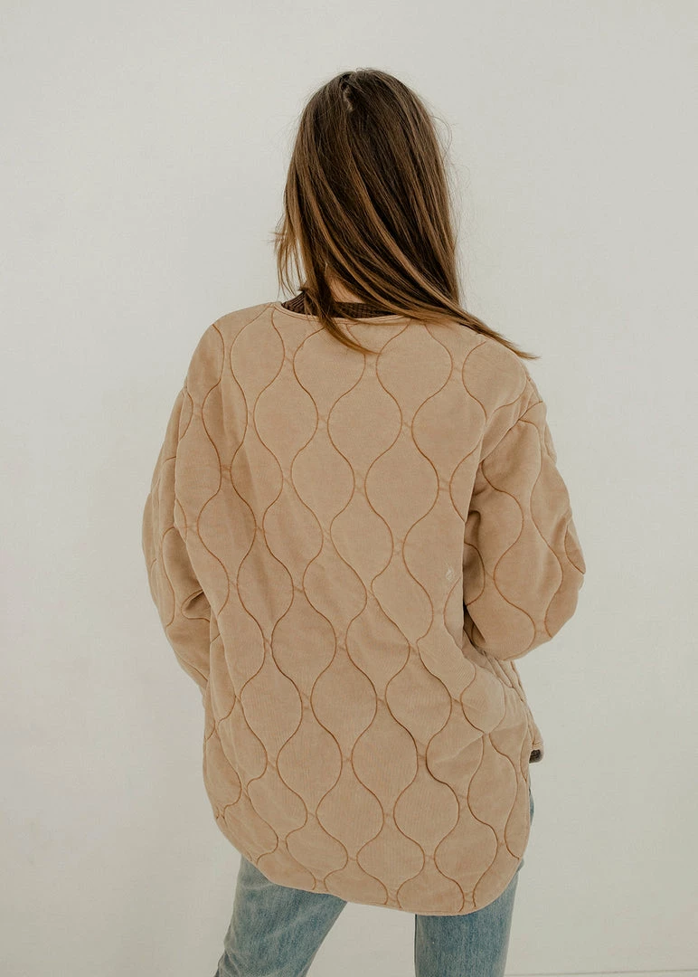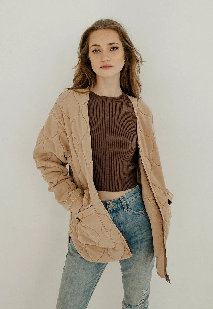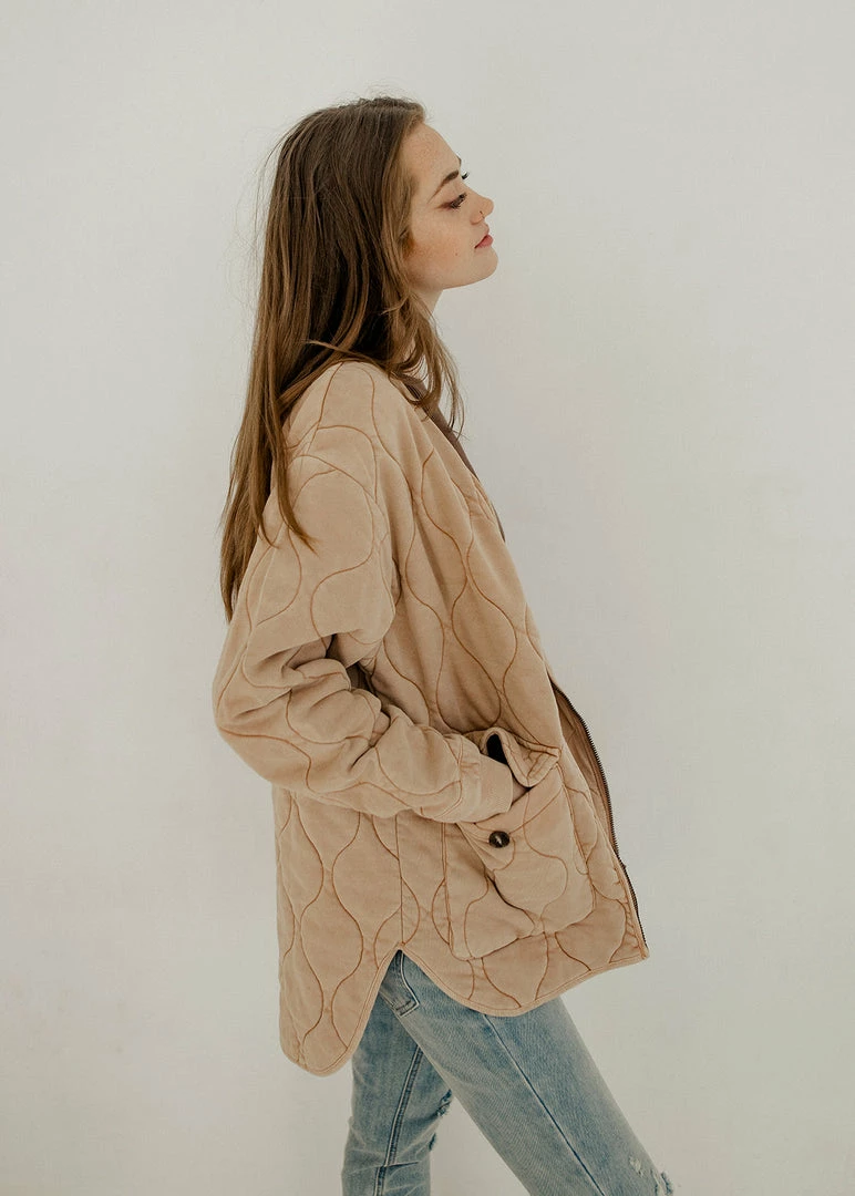Quilted jackets are so in! Our Charli Stone Washed Quilted Jacket is a classic sand color with a front zipper closure made in a high quality construction.