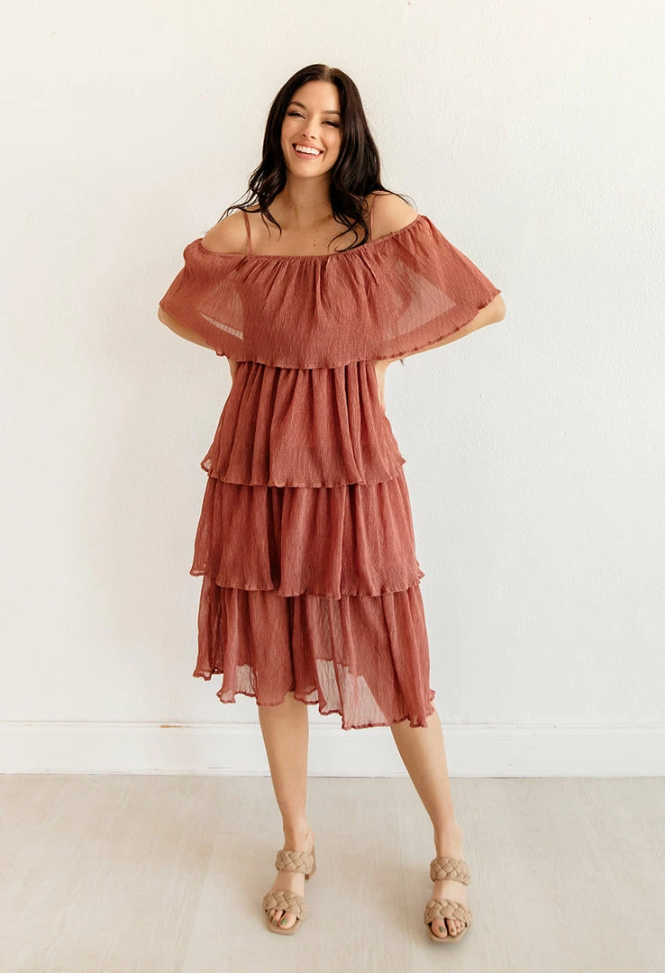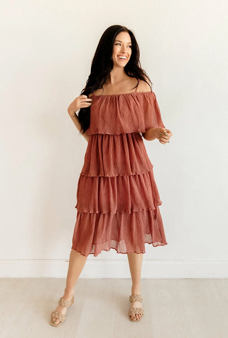 Our Rehearsal Tiered Midi Dress looks fab when worn on or off the shoulder! This mauve tiered midi features a square neckline and adjustable shoulder straps. Cascading tiers make up the body.