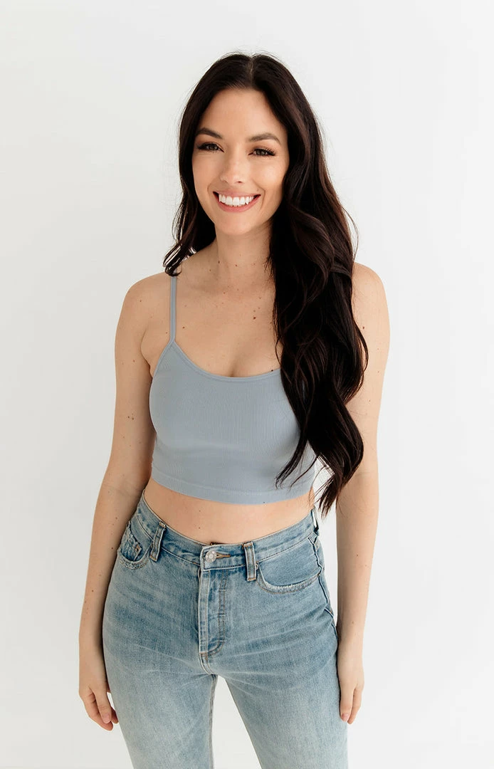 A cute cropped cami is a essential! Our Weekend Stay Seamless Brami features a soft and seamless finish in a stretchy fabrication with thin fixed straps. Layer it to add coverage to sheer tops, open cardigans or wear it as you lounge around the house!