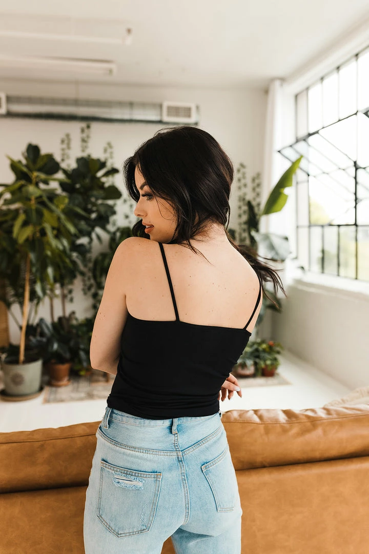 We love a simple + clean finish! Our Seamless Cami Tank is an essential piece for every wardrobe. Made with a soft and stretchy pewter jersey, fixed straps and a seamless hemline. No fuss, no worry, just a perfect fit!