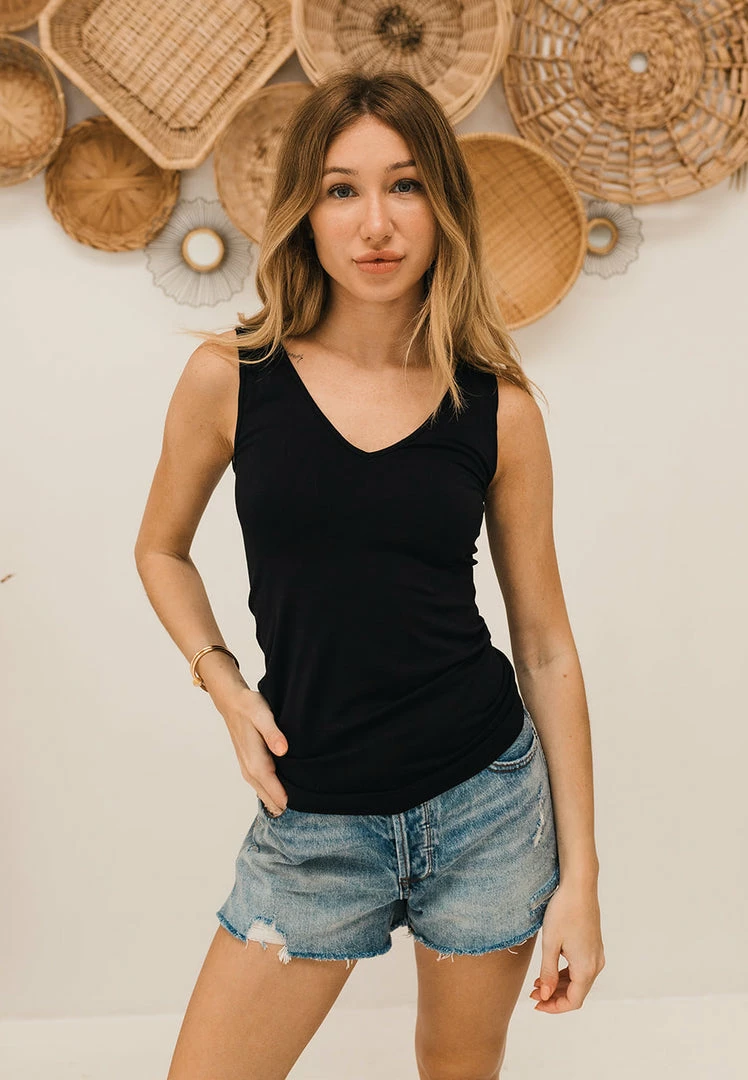 Our Versatile Seamless Knit Tank is an elevated closet essential. From the stretchy sleek black fabric, fitted body, and seamless construction, it’s worth getting one in each color!