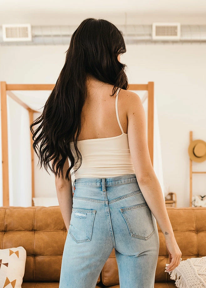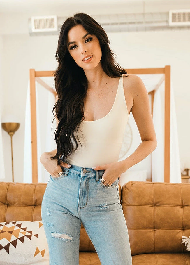 Keep calm and cool in the Seamless Scoop Neck Cami! This buttery cream colored knit cami comes in a fitted silhouette with a scoop neckline and fixed straps. The soft stretchy fabric is extremely flattering while the built in bra provides extra coverage. Pair this versatile top under cardigans and jackets for a classic look.