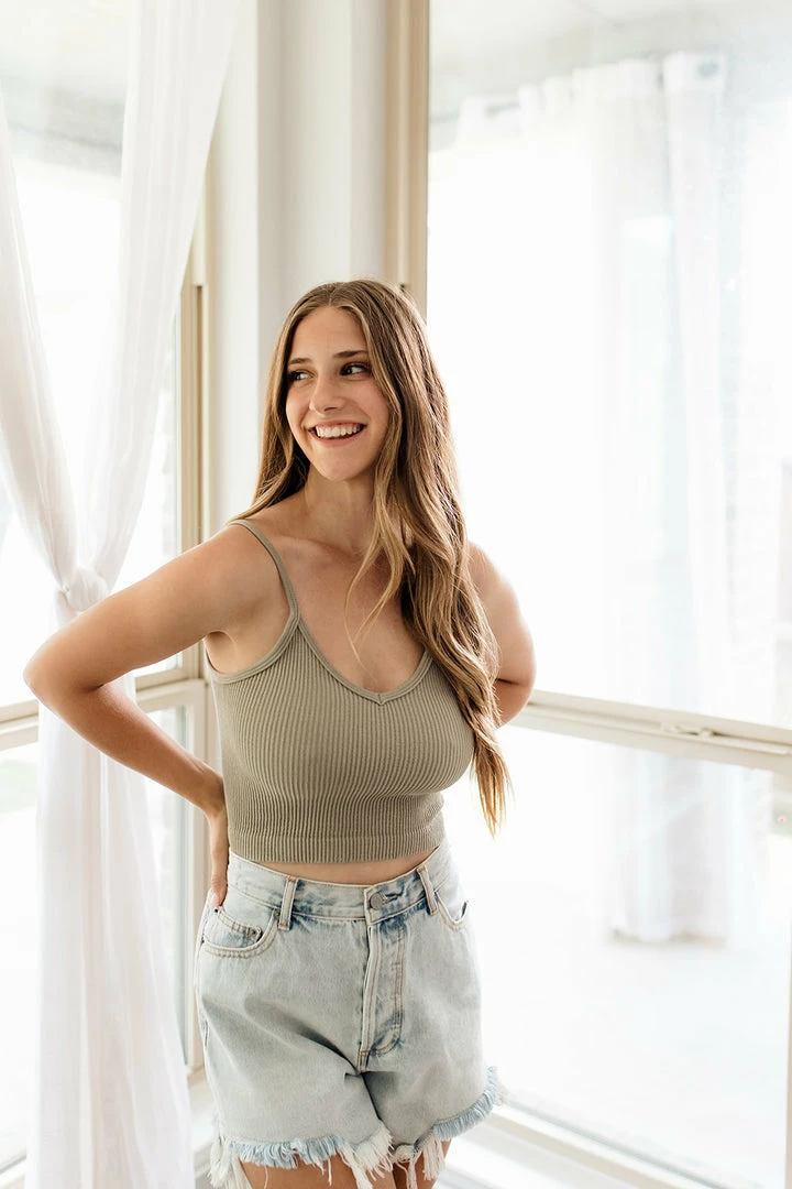BT Sydney Ribbed Seamless Crop Tank - Light Moss TOPS