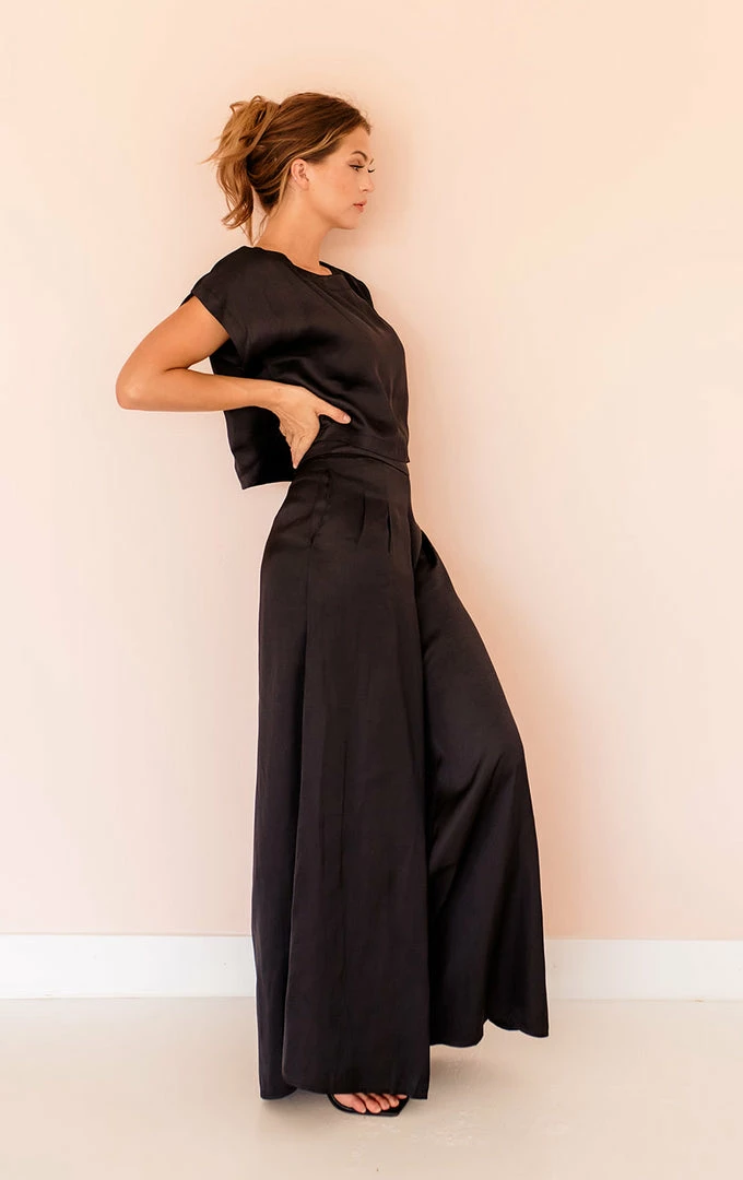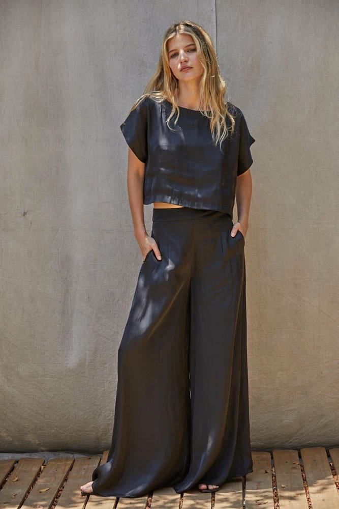 Be the main character everywhere you go in this camel colored set! Our Tamra Pocketed Satin Pants feature a smocked waist. These silky pants are designed with wide pant legs and a high rise.