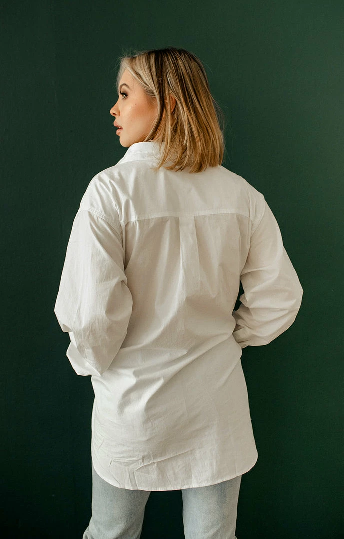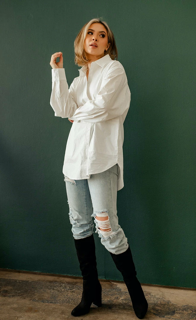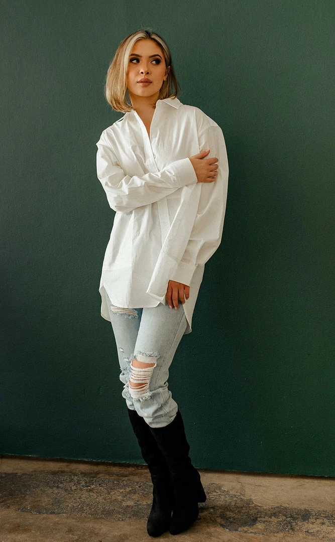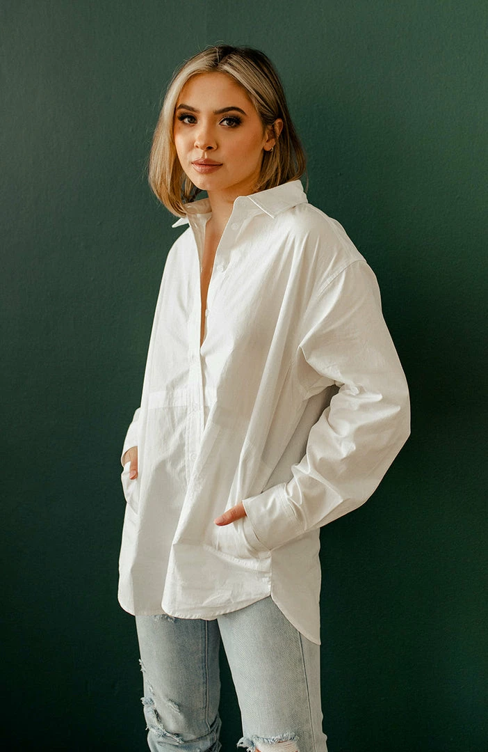 Deliver business casual vibes in our Crisp Cotton Button Down Shirt! This off white shirt is designed with a collar and a bust pocket. Front button closures finish this piece. We love how this top styles open or closed.