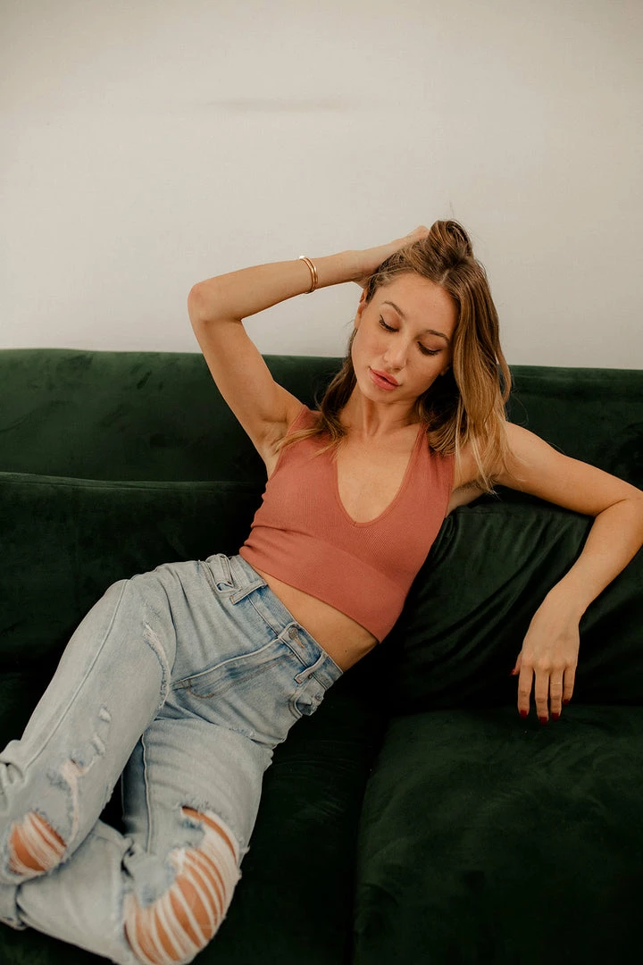 - Size M/L: Length measures 15” from shoulder to hem with a 24” bust with stretch