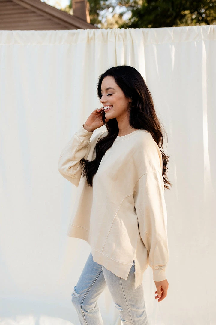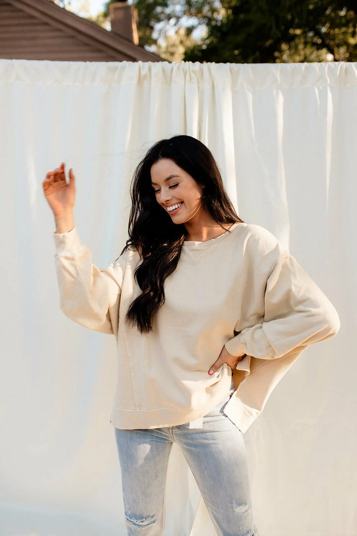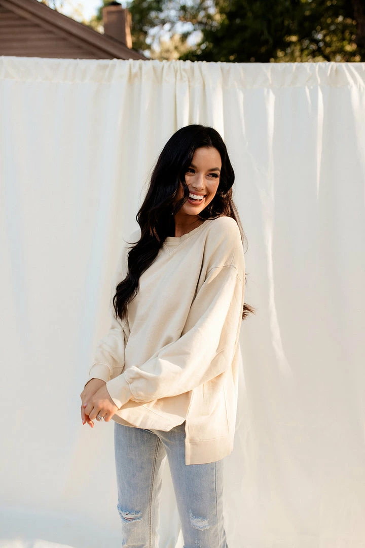 Spend sundays relaxing in our Sunday Cotton Blend Sweatshirt! This light mustard base knit sweatshirt is finished with a crew neckline and ribbed edges.