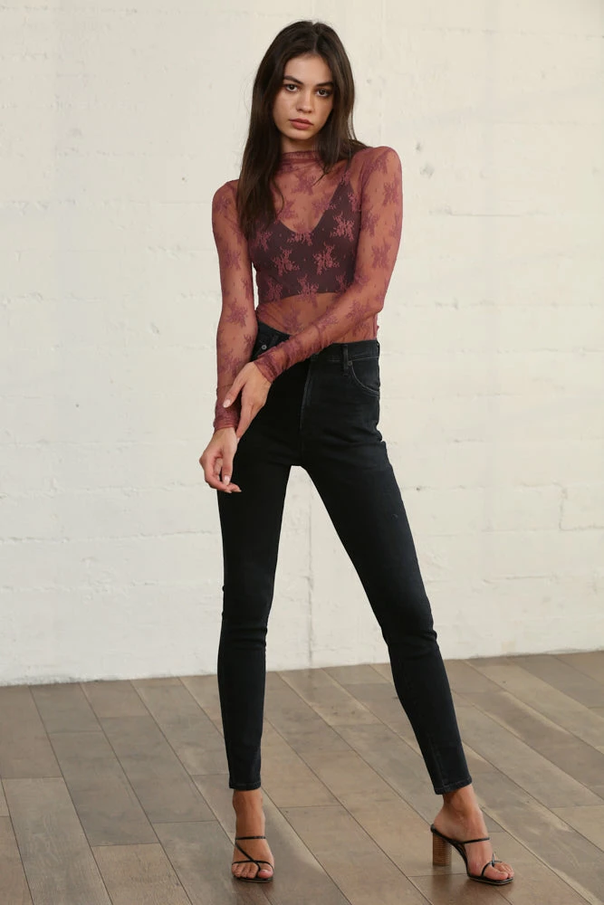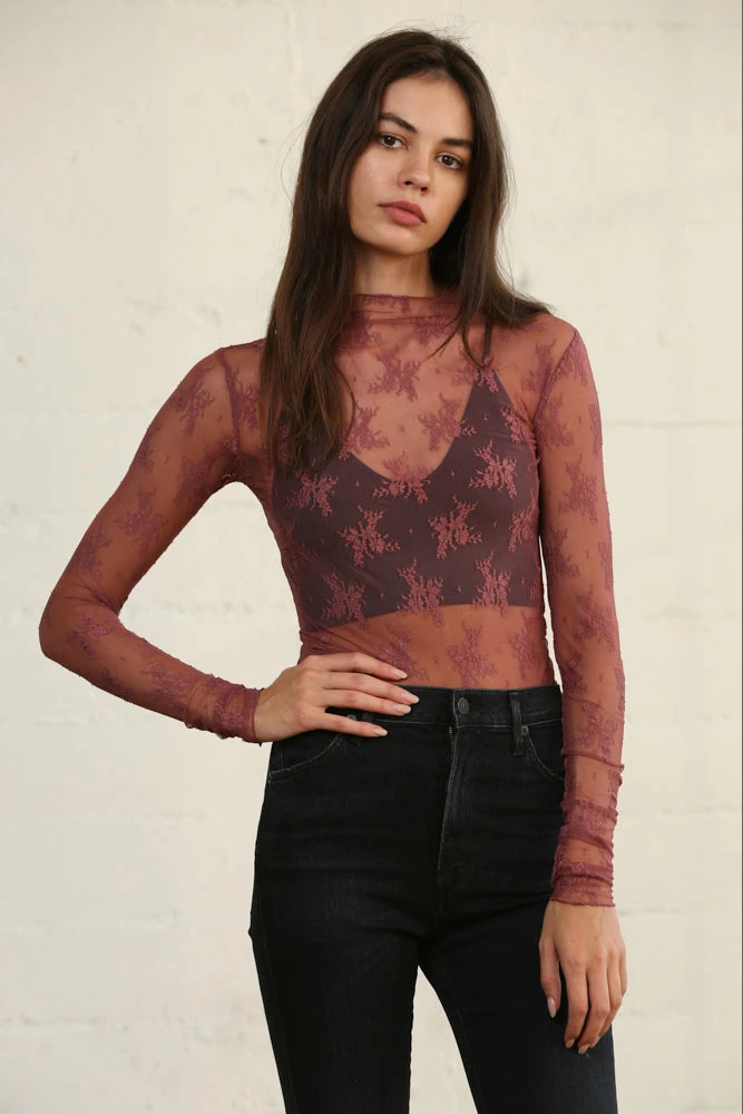 Our Sweet Mary Sheer Lace Top is the perfect layering piece! Made of a delicate burgundy sheer lace, this high neck top adds flair to any look. Finished with a fitted silhouette. This on-trend top looks insanely good under dresses and jumpsuits to add a little bit of spice.
