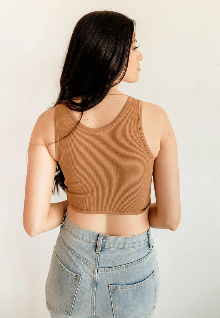 A tank you’ll be wearing on repeat! Our Tori Reversible Twist Crop Top is a ribbed style with a fitted crop silhouette. A reversible neckline and fixed tank straps make this simple tank very flattering. Styled with our Perfect Control Legging.
