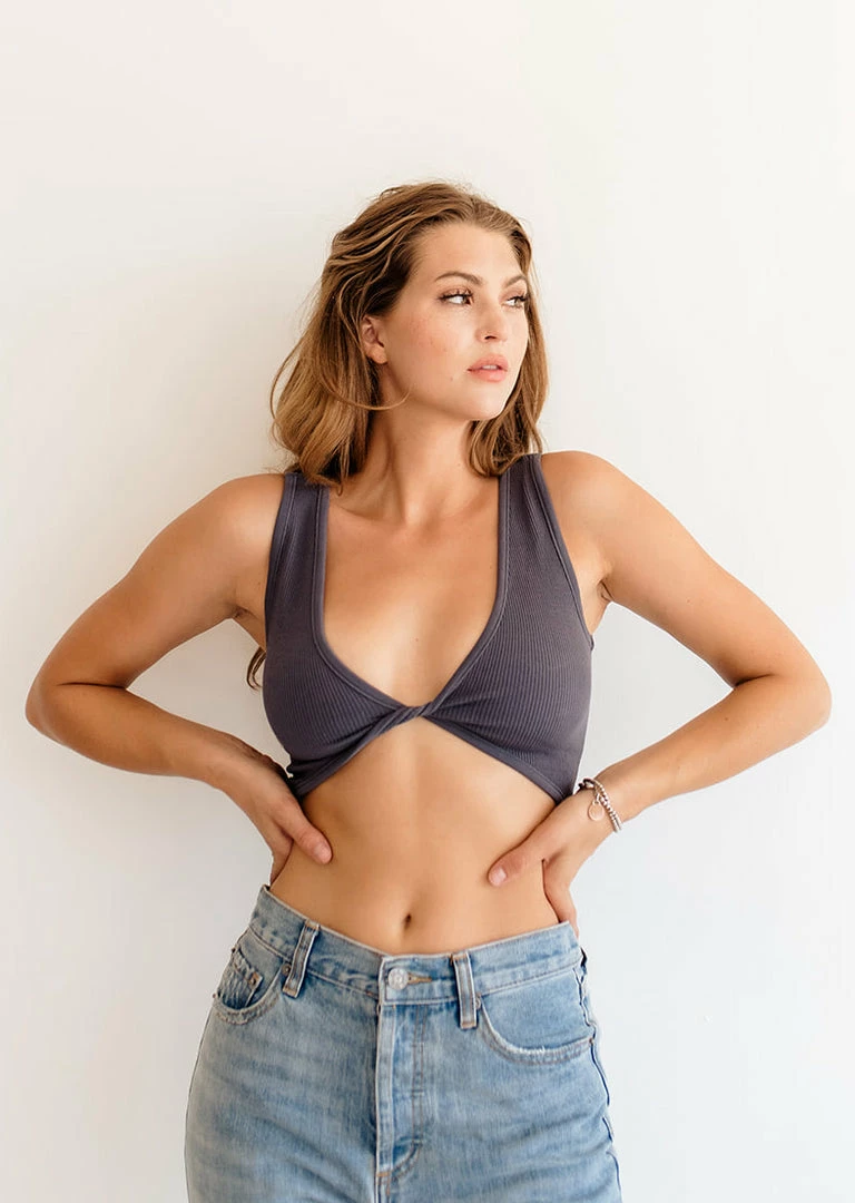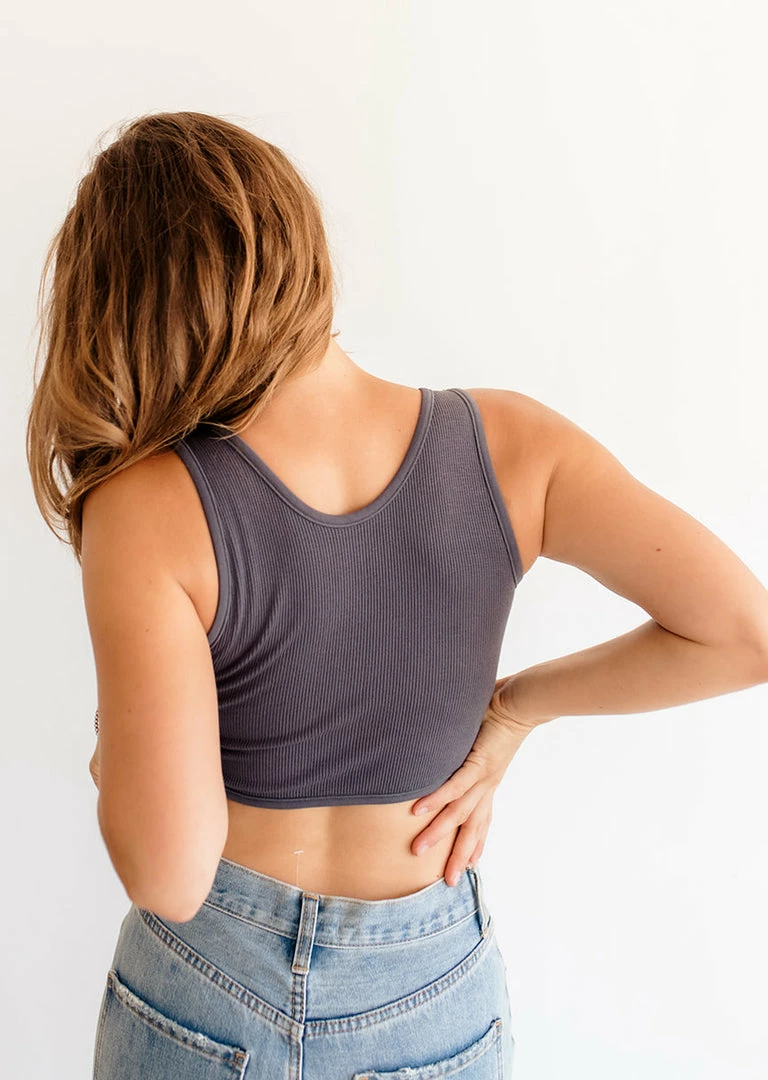 A tank you’ll be wearing on repeat! Our Tori Reversible Twist Crop Top is a ribbed style with a fitted crop silhouette. A reversible neckline and fixed tank straps make this simple tank very flattering.