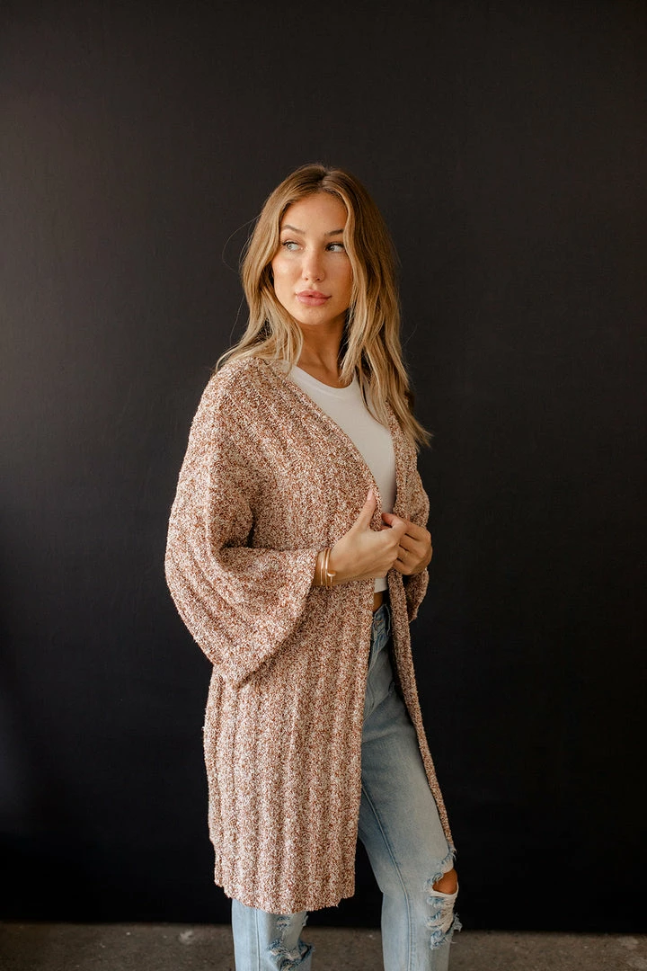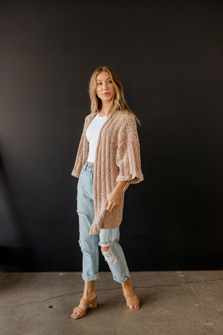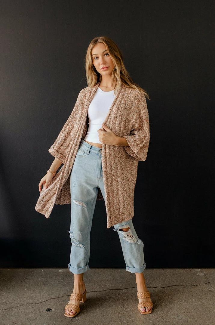 Ventura Mixed Yarn Knit Sweater Cardigan is perfect for this season of life! Stay in, stay cozy and stay chic! It’s fit with an open front and kimono sleeves. Designed to have a relaxed fit for optimal comfort and effortless styling! It features an taupe and cream body topping a soft fabrication. Cut with side slits to complete the look.