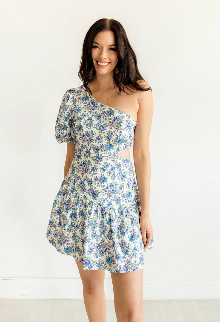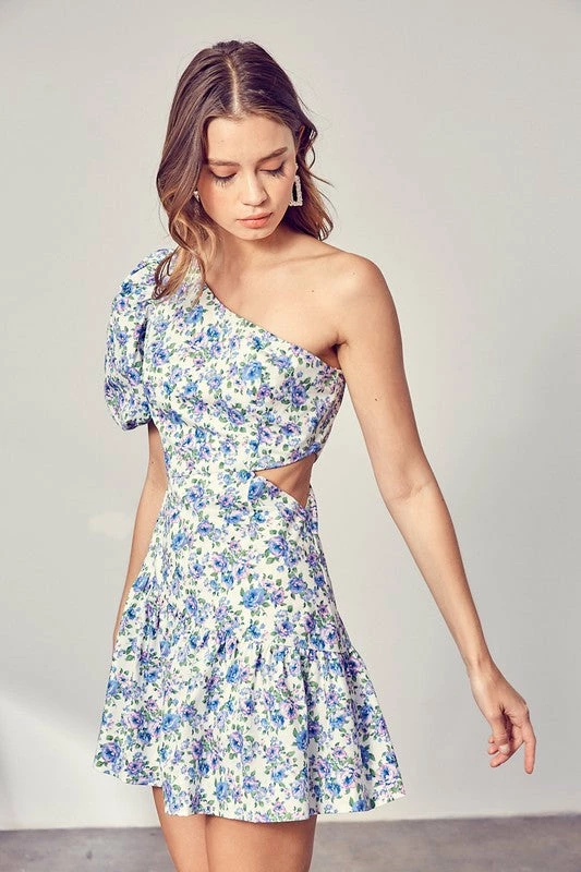 Bold red is such a holiday-ready color! Our Persimmon One Shoulder Cutout Mini Dress features a ruffle peplum trim. Designed with a waist side cutout detail. Secured with a concealed side zipper closure.