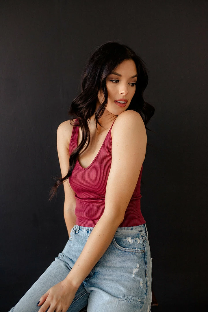 Every wardrobe needs our Calbi Ribbed Cropped Tank! This tank features a v-neckline and a fitted composure. We love the way this flattering tank pairs with cutoff denim shorts or matching biker shorts.