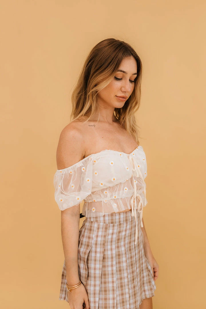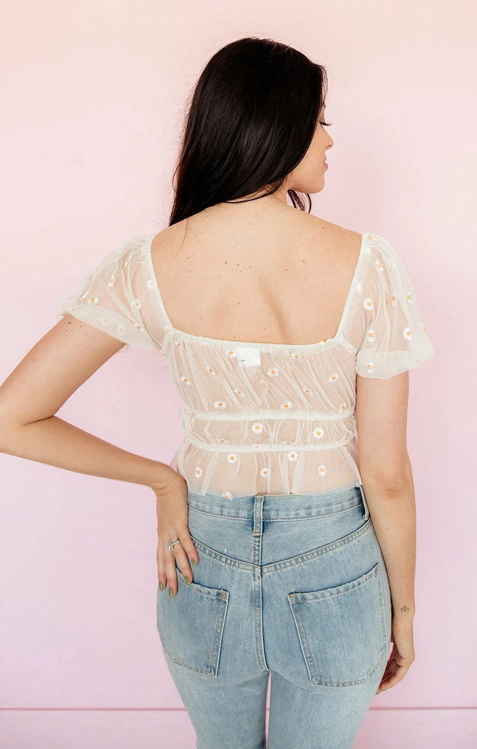 Our Breezy Embroidery Mesh Crop Top embodies the femmest Spring vibes! Dainty floral embroidery throughout, short sleeves and a smocked waist make this cute ivory crop a must have for the season! Simply pair it with high rise denim and layered necklaces to set the trend.