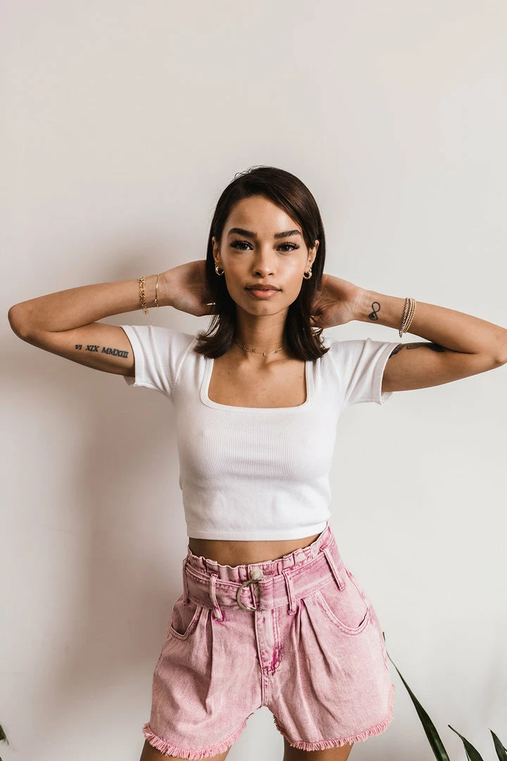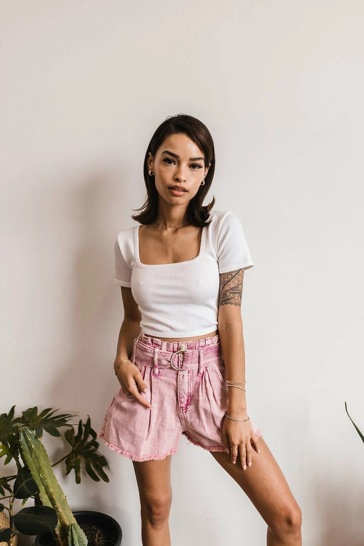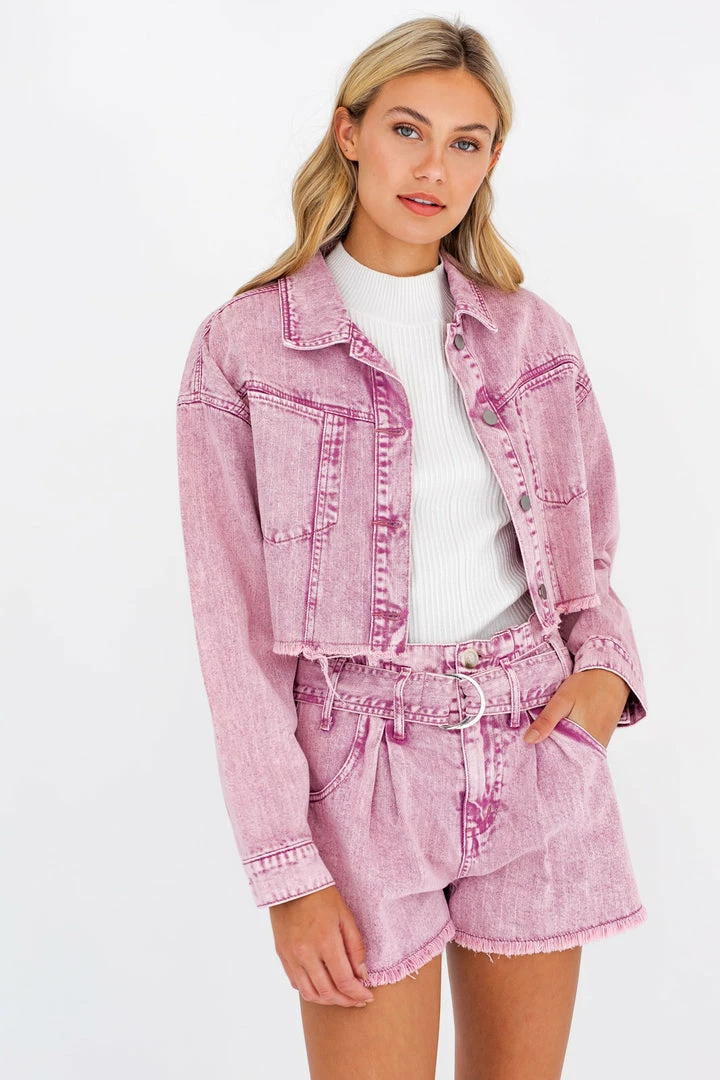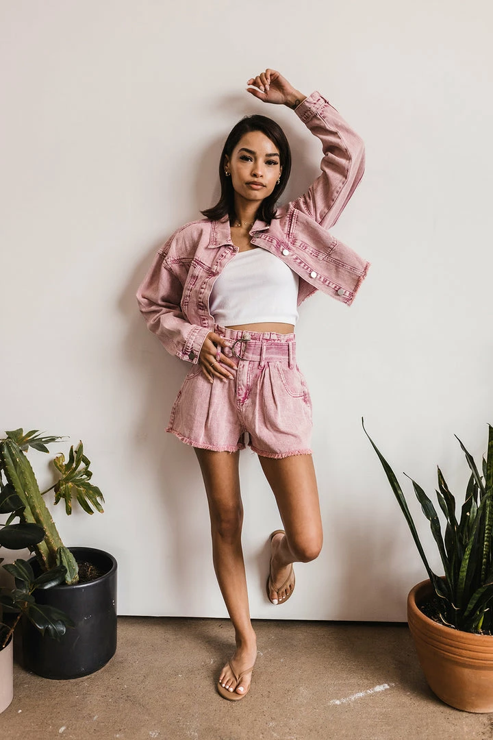 A trendy waistline makes our Lizzie Acid Wash Paper Bag Shorts an instant fave! Constructed in a acid wash non-stretch denim base that’s high rise with four pockets. A waist belt tie defines the waistline. Finished with a front zipper and button closure. Match it with our Lizzie Acid Wash Trucker Jacket.