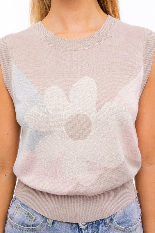 Yes, you can wear a knit in springtime! Our Patience Floral Knit Sweater Vest Top comes in a sweet taupe color with a floral print. This sweater vest layers flawlessly with your favorite jeans.
