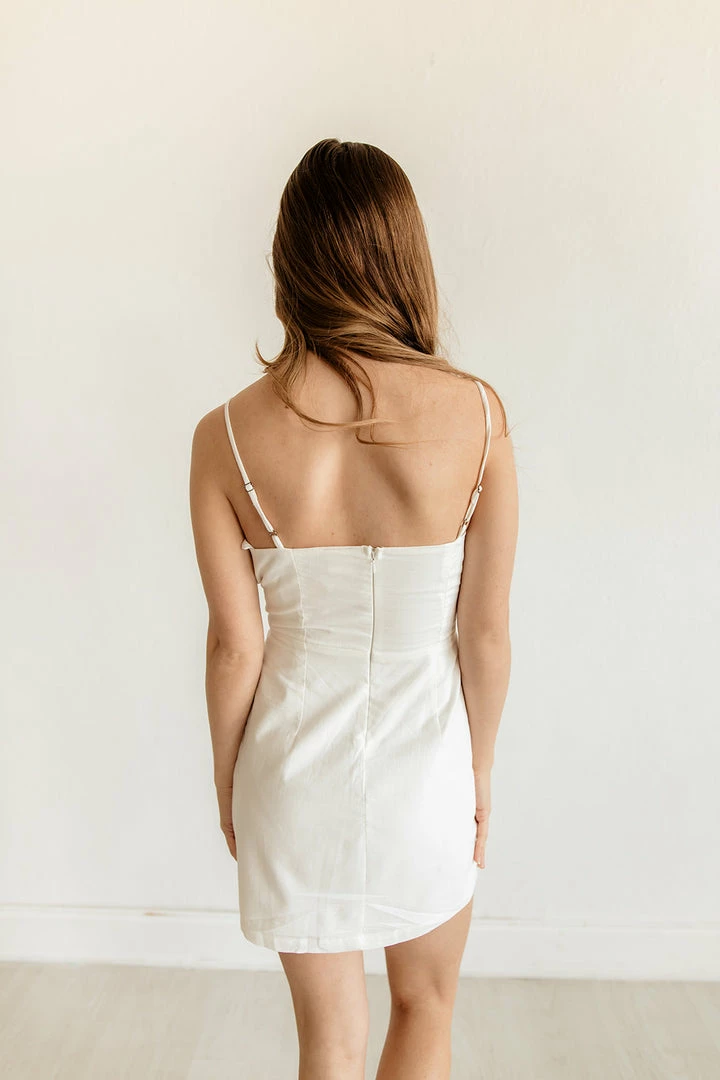 Designed for all of your brunch plans, the Springsteen Cutout Mini Dress in ivory is detailed with a smocked upper and a fitted silhouette.