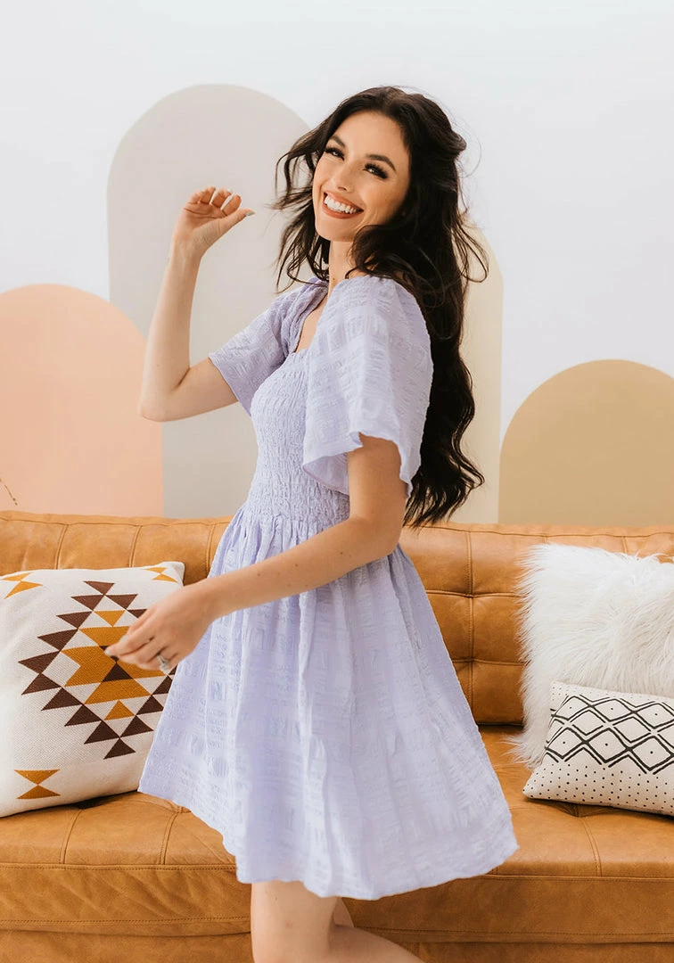 There’s nothing sweeter than a babydoll dress! Our Riggs Smocked Textured Dress is blue with a fit and flare silhouette and a square neckline.