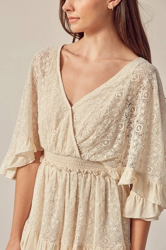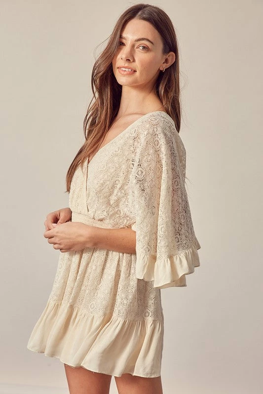 Sunday brunch chic! Our Waylen Cotton Blend Crochet Dress features a vintage cream hue with a billowy fit and a v-neckline finished with flowy angel wings. This gorgeous piece is lined with a back necktie and inside shorts.