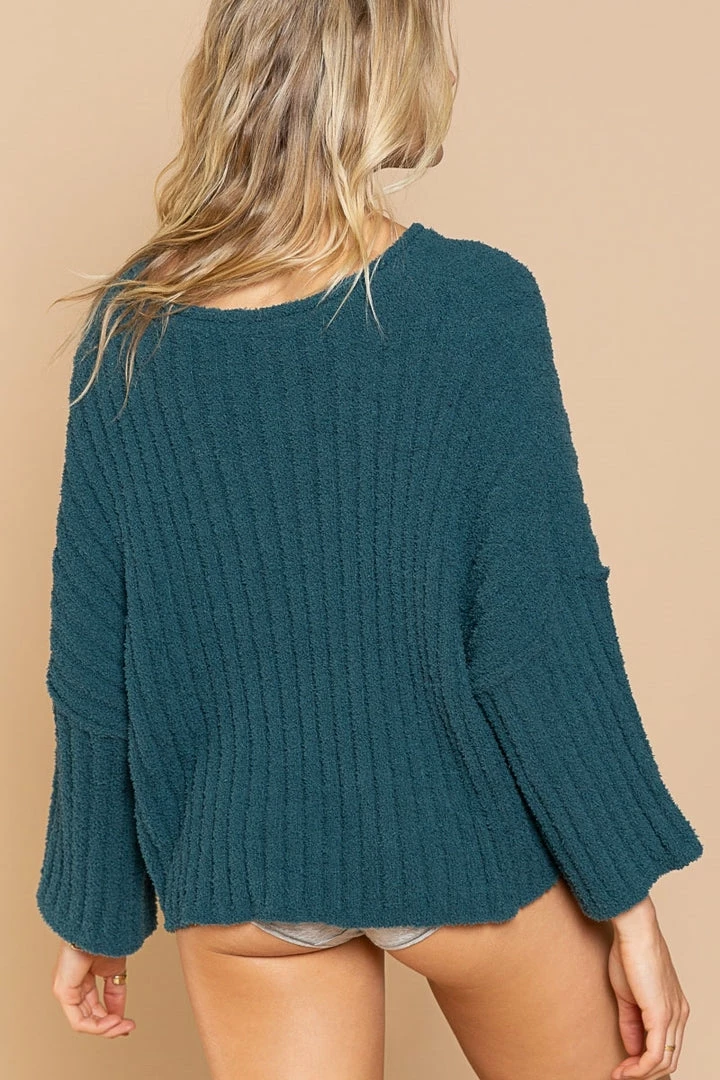 Our Drifter Ribbed Soft Sweater is perfectly casual! This burnt topaz soft knit sweater has quarter sleeves. Finished with a scooped neckline.