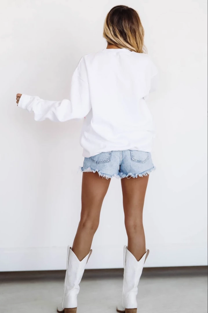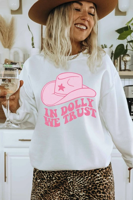 Adding another Dolly Tee in your wardrobe is not a bad idea! This pink and white vintage graphic sweatshirt for women makes us want to go to Nashville, NOW! It’s a regular fit sweatshirt and for a bigger, oversized look, size up. Doing our errands in our Dolly sweatshirt makes the day do-able.