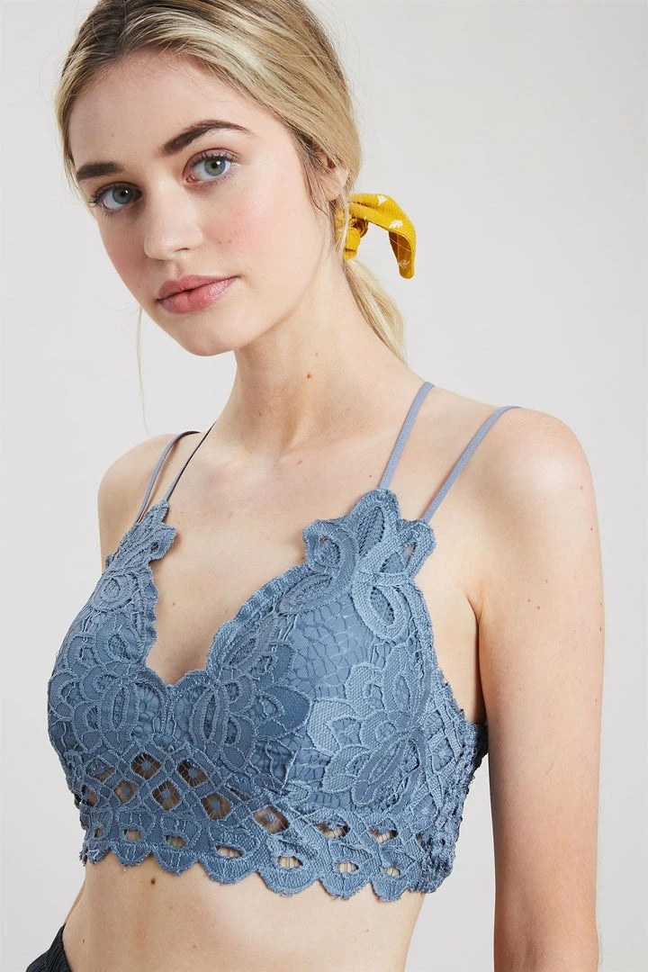 We’ve got a crush on this one! Create a little allure in your life in our Cassie Padded Lace Bralette! This bralette is fully detailed in stretchy lace with a scalloped neckline and adjustable straps. We love the dual criss cross straps and padded bust! This bralette is a pullover with no closures – tank style! Model is wearing size Small.