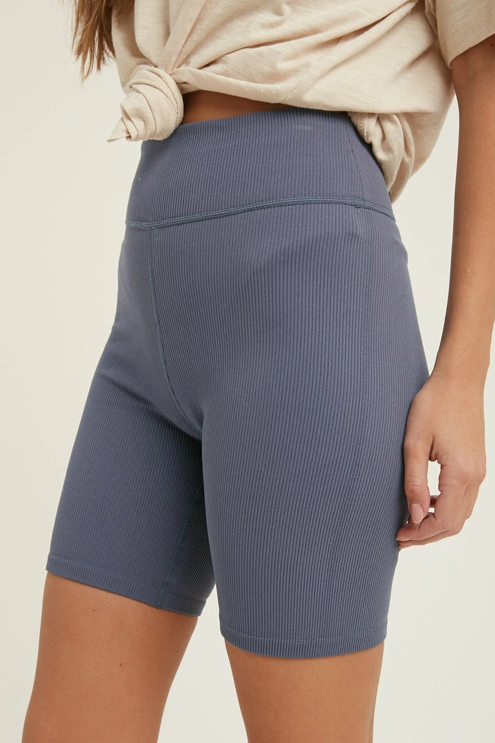 Give your athleisure collection an upgrade in this slate blue colored set! Our Superset Ribbed Biker Shorts feature a high rise waistband. Designed in a quick dry and breathable fabrication.