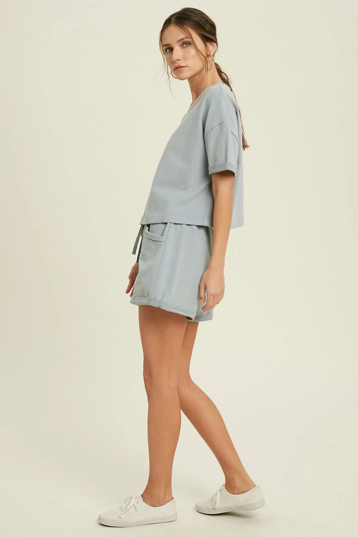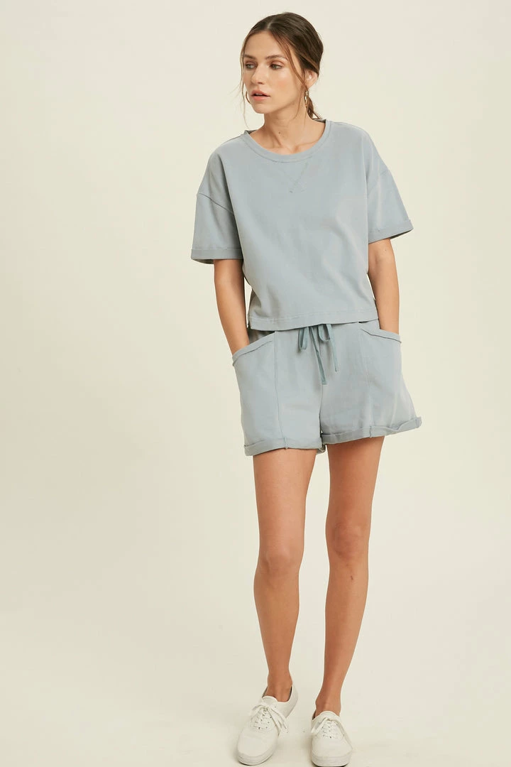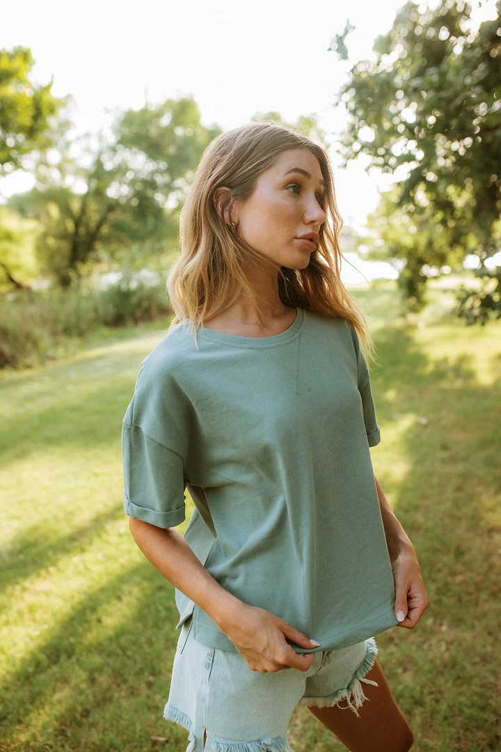 If you’re looking for a laid back ‘fit, try our Vernon Cotton Top in blue. The fabric elevates the relaxed silhouette on this casual piece. Featuring a scoop neckline, sewn cuffed half sleeves.